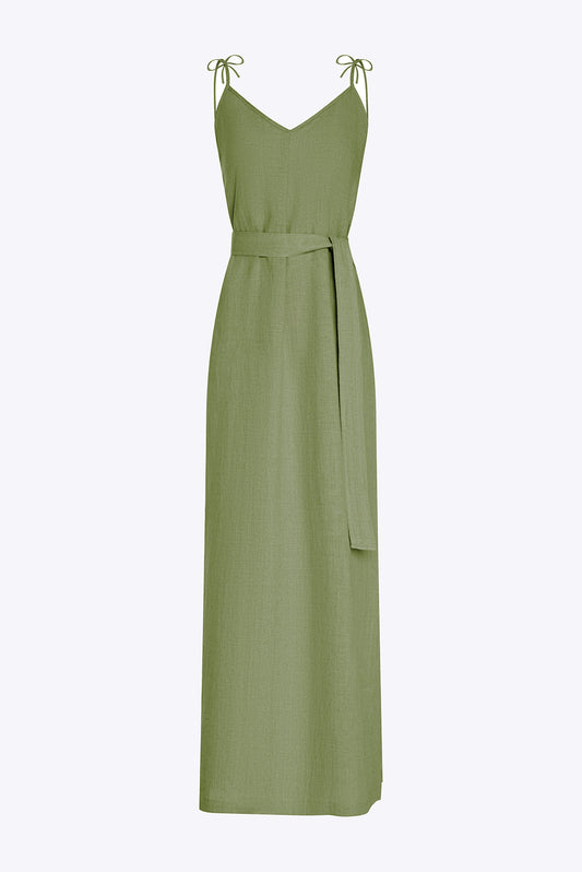 Lniana sukienka na ramiączkach maxi - Positano