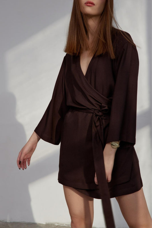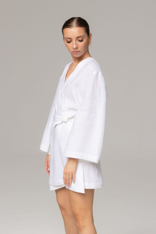 WyprzedaneSukienka kimonowa z lnu i wiskozy mini