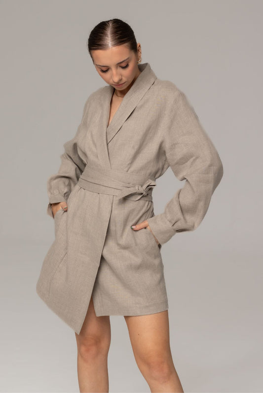 Lniana sukienka zakładana a'la marynarka krótka