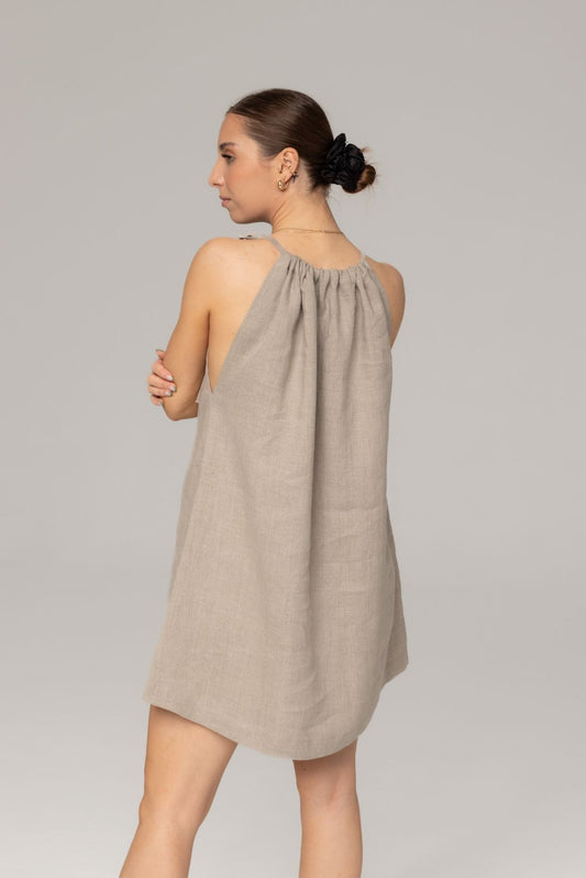Ostatnie sztuki -30%Lniana sukienka elegancka mini - Amalfi