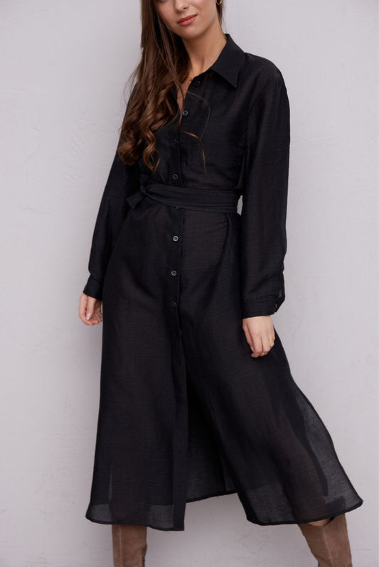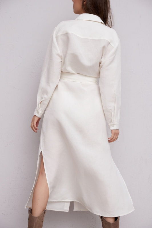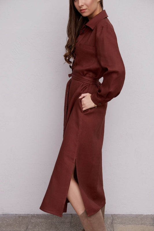 WyprzedaneLniana sukienka koszulowa maxi 7/8