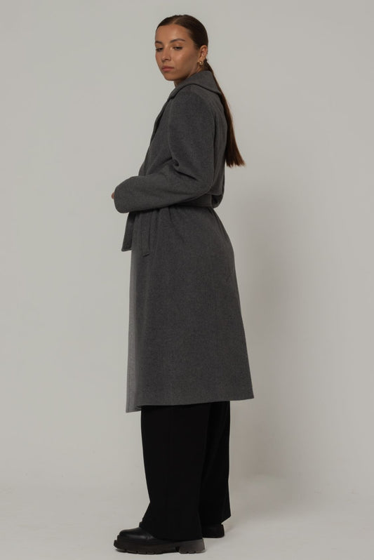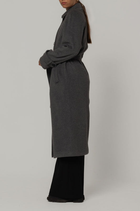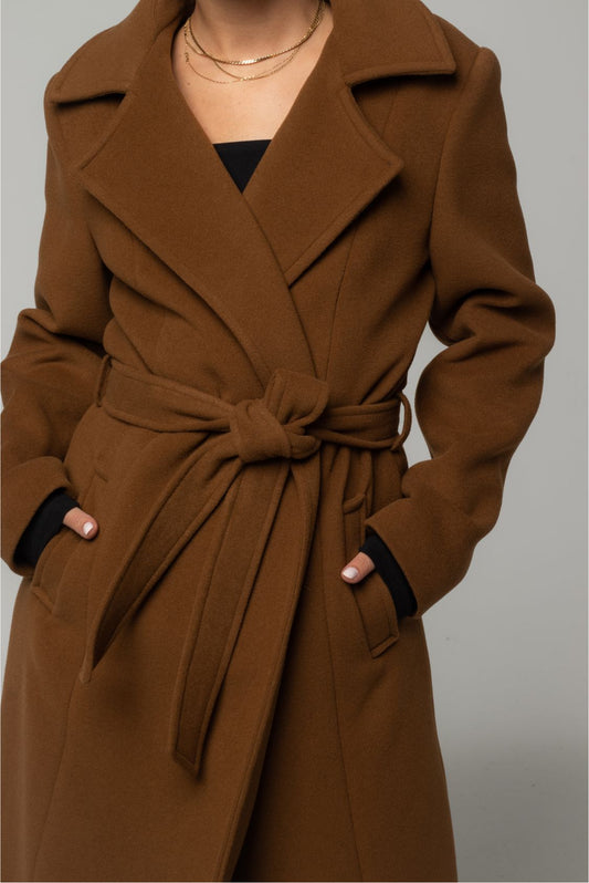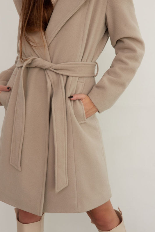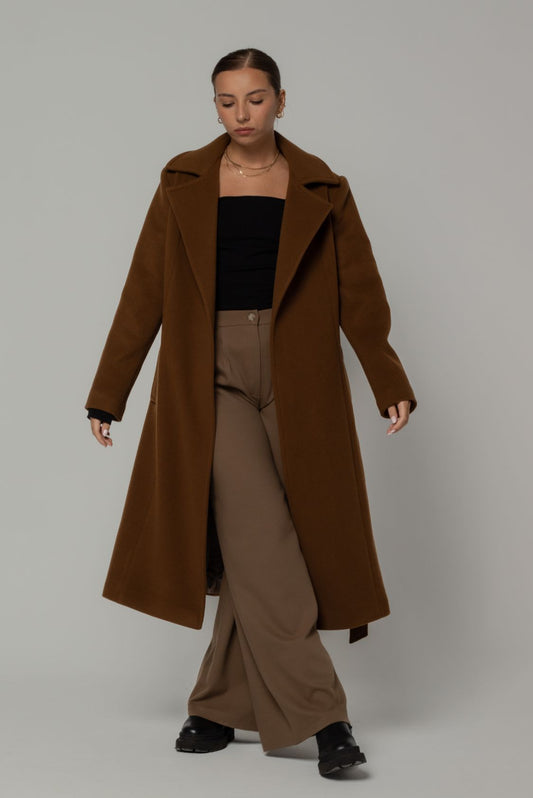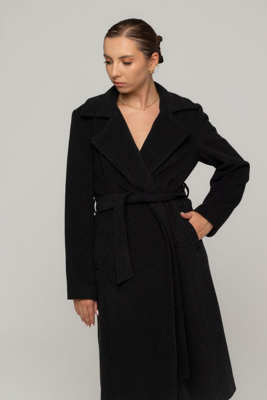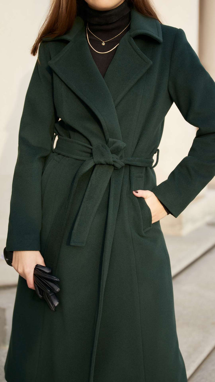 Długi płaszcz szlafrokowy z paskiem, z wełny - Milano
