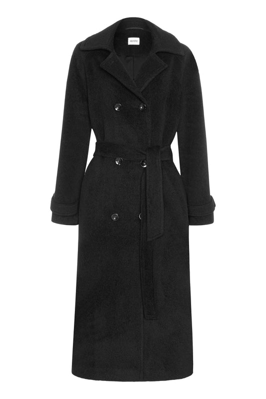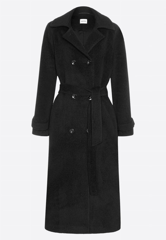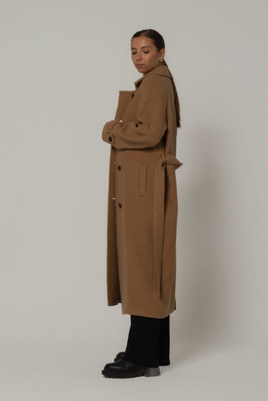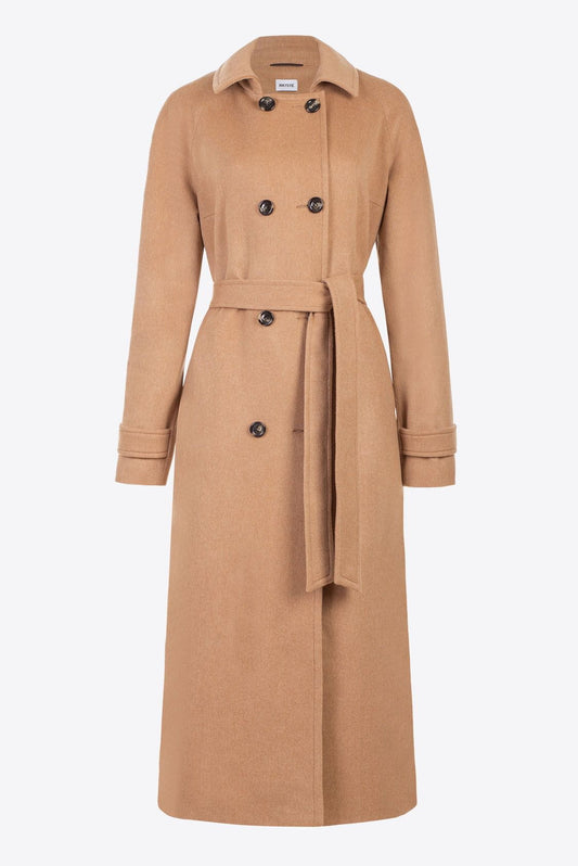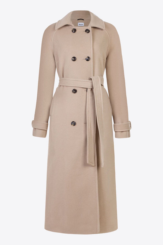Długi płaszcz dwurzędowy z paskiem, z alpaki i wełny dziewiczej, Braga