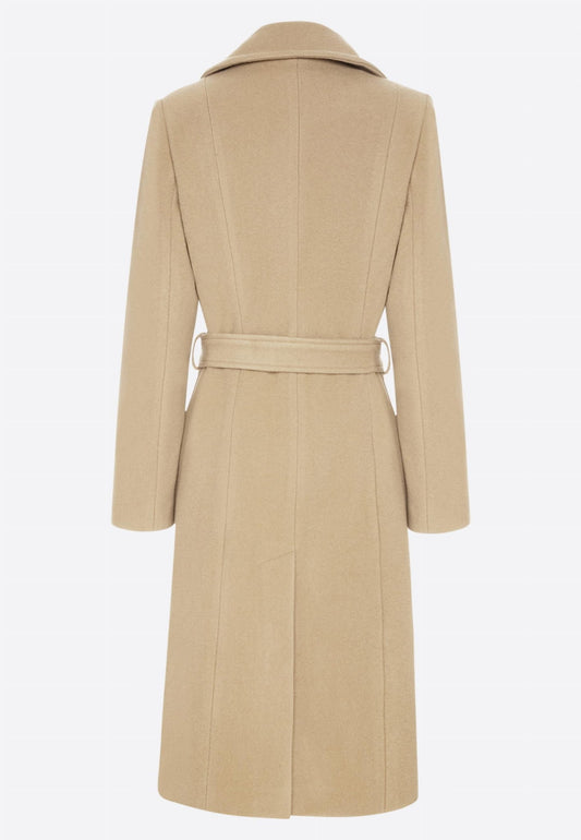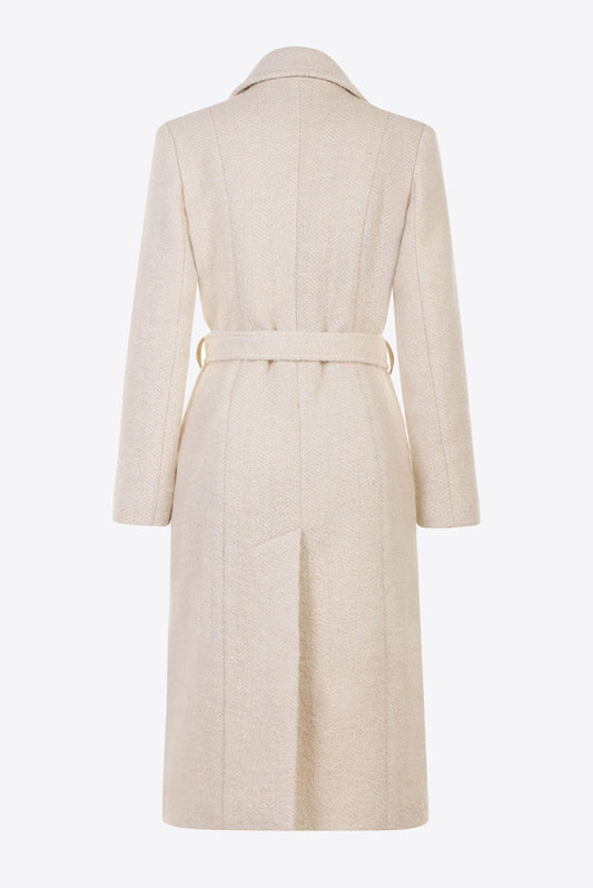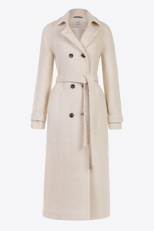 Długi płaszcz dwurzędowy z paskiem, wełna jagnięca i moher, ecru, Braga