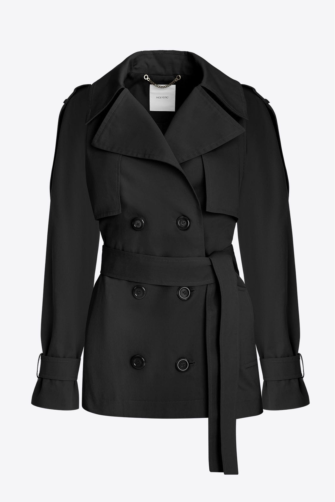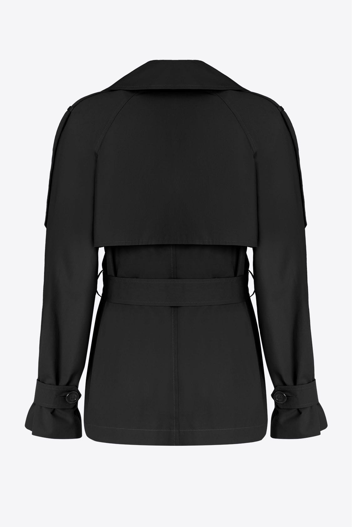 Czarny trencz oversize krótki, z paskiem - Roma