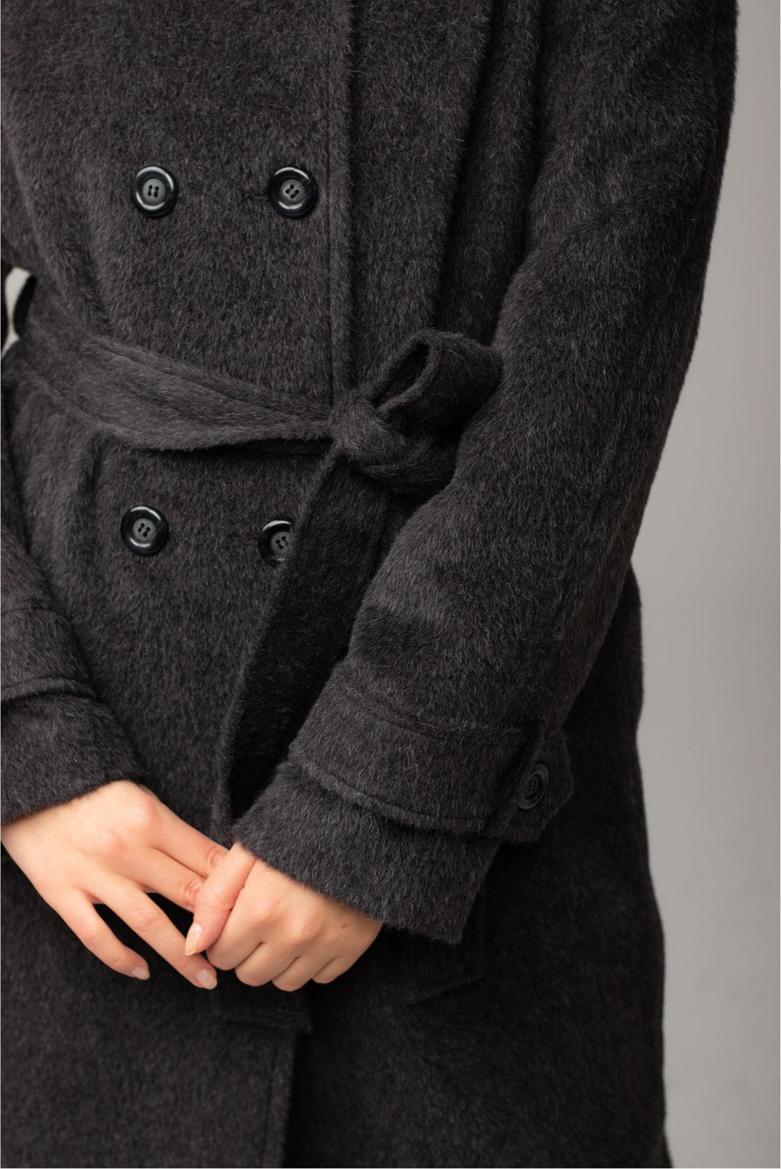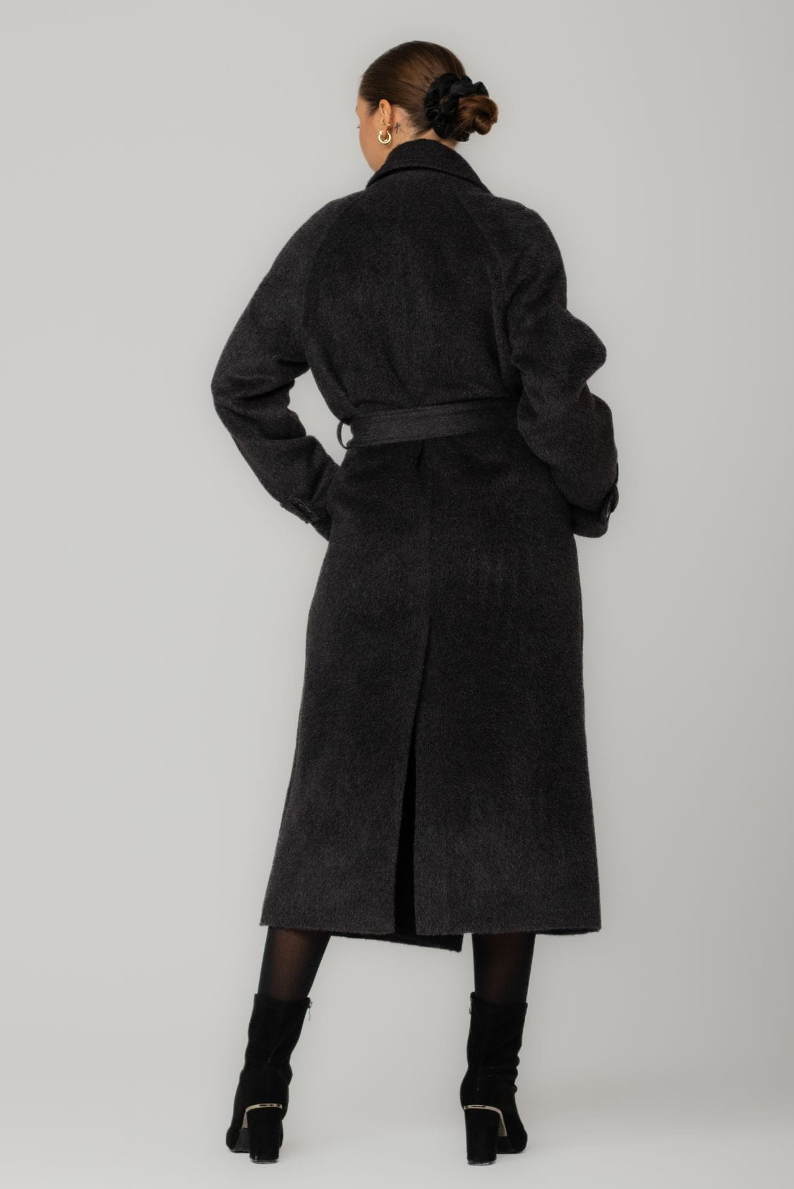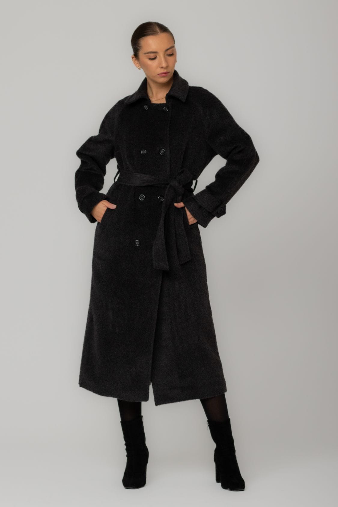 Długi płaszcz dwurzędowy z paskiem, z alpaki i wełny dziewiczej, Braga