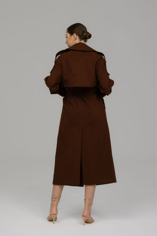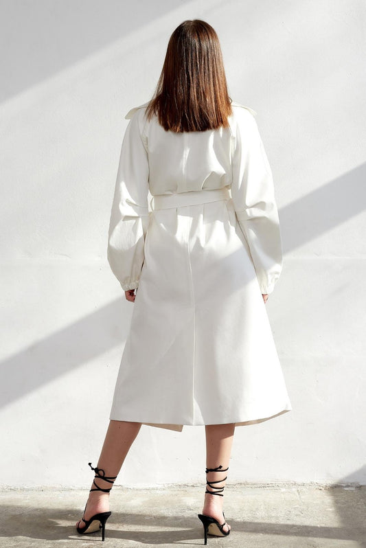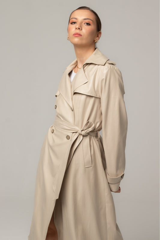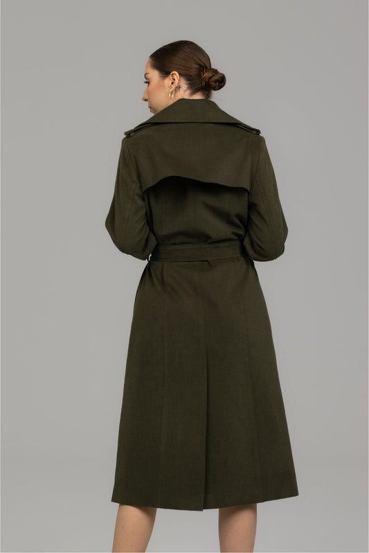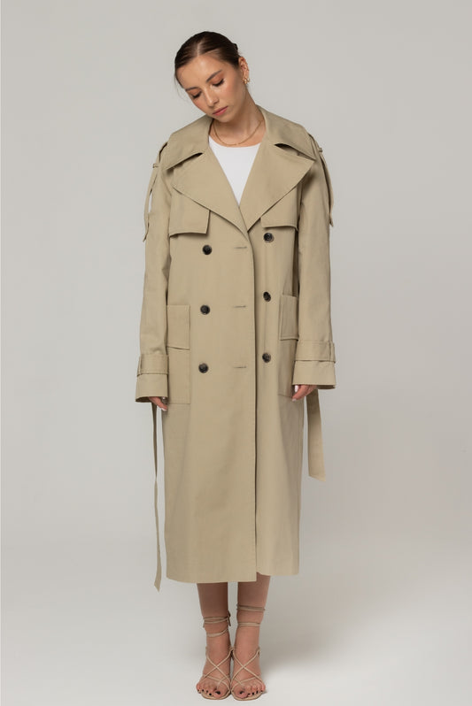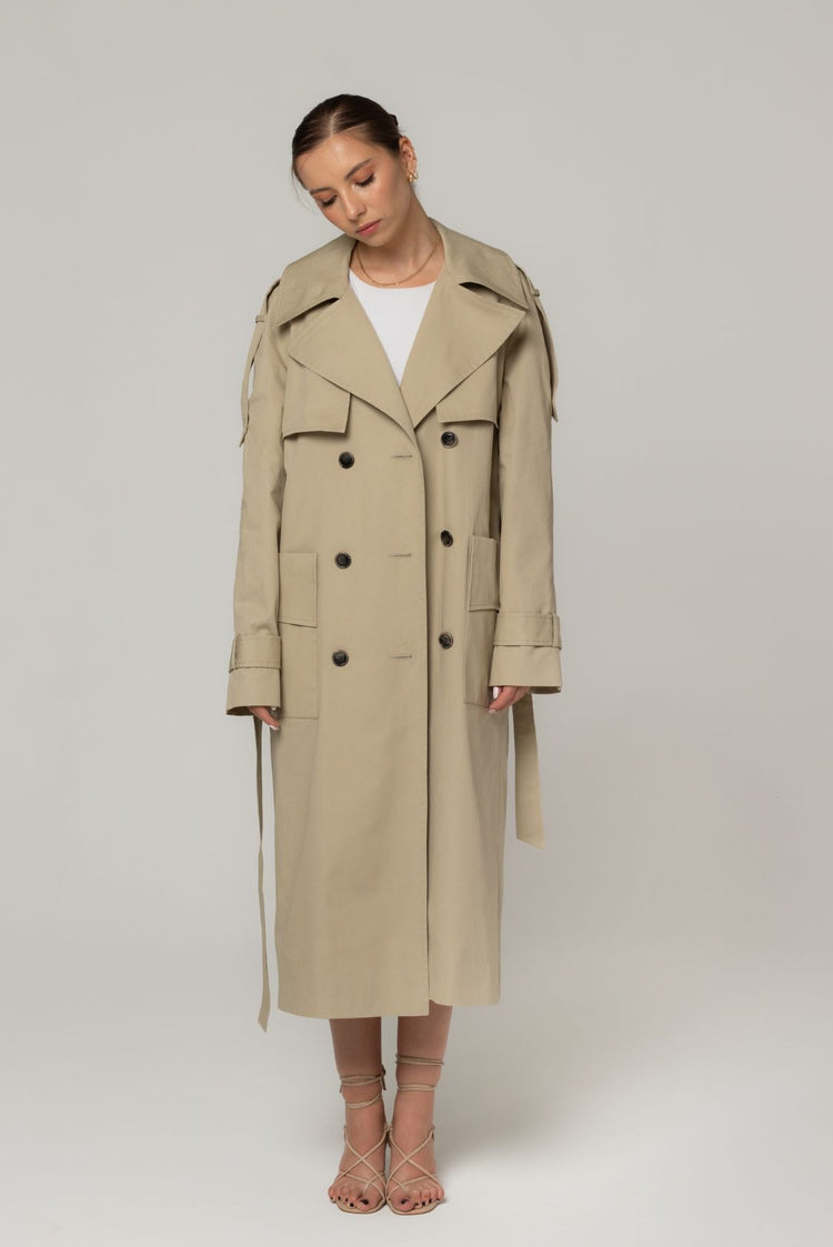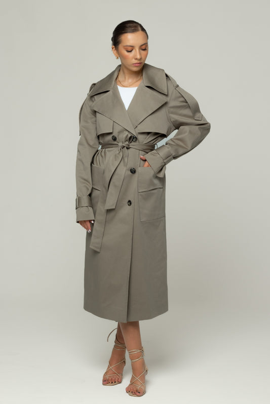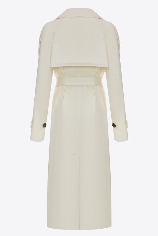 Trencz oversize dwurzędowy z paskiem z gabardyny - Lima
