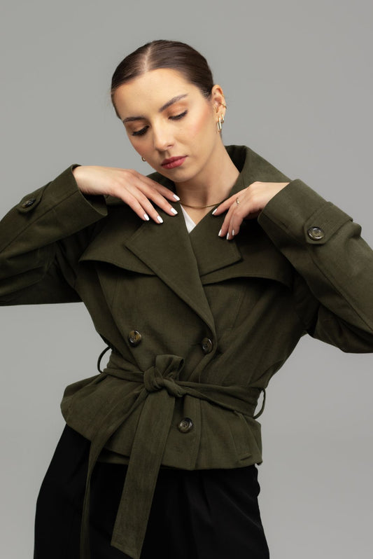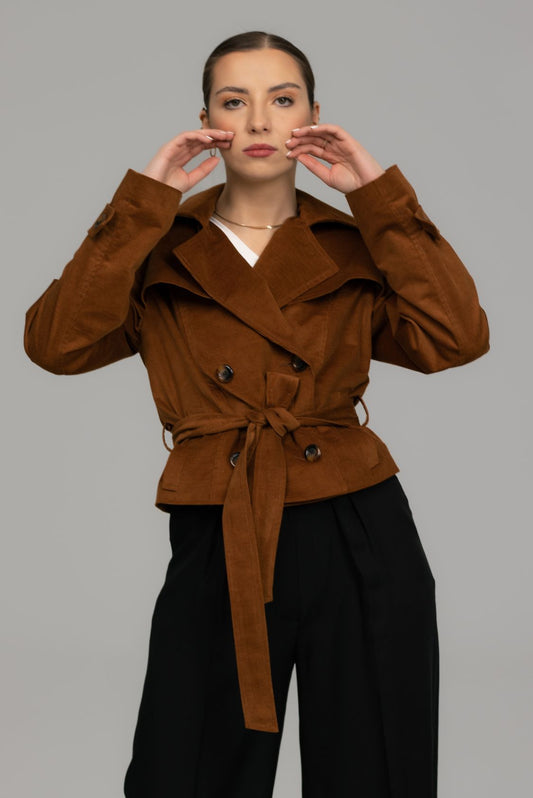 Trencz krótki klasyczny z paskiem 100% bawełna - Bergen