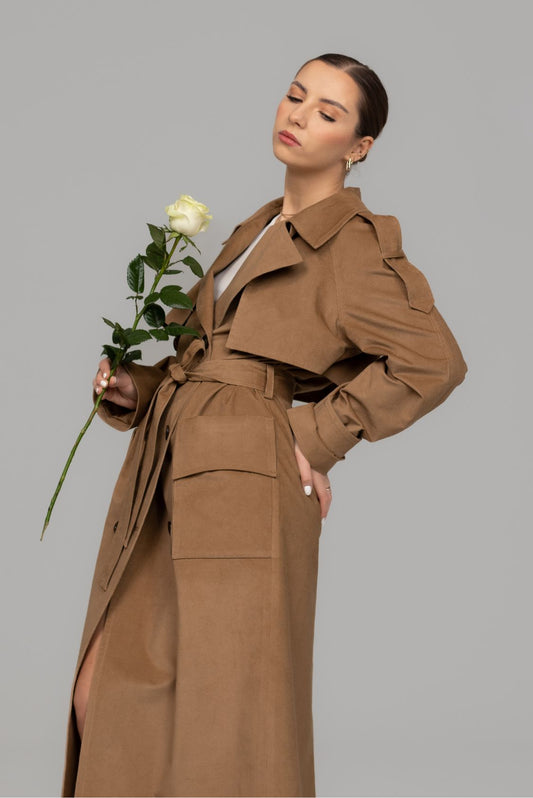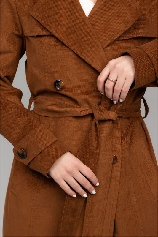 Trencz klasyczny z paskiem z aksamitnego weluru - Bergen