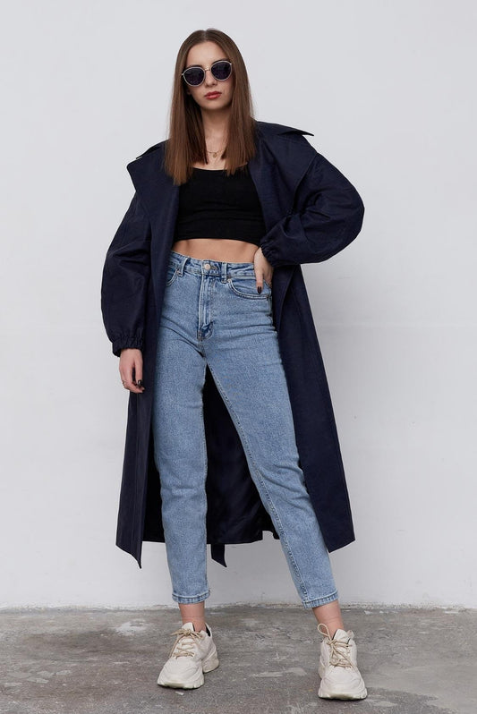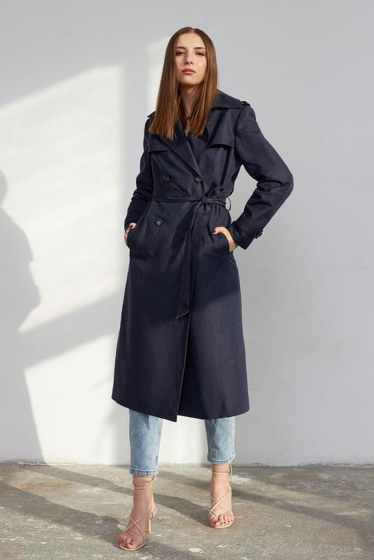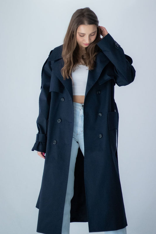 Trencz oversize dwurzędowy z paskiem 100% bawełna - Lima
