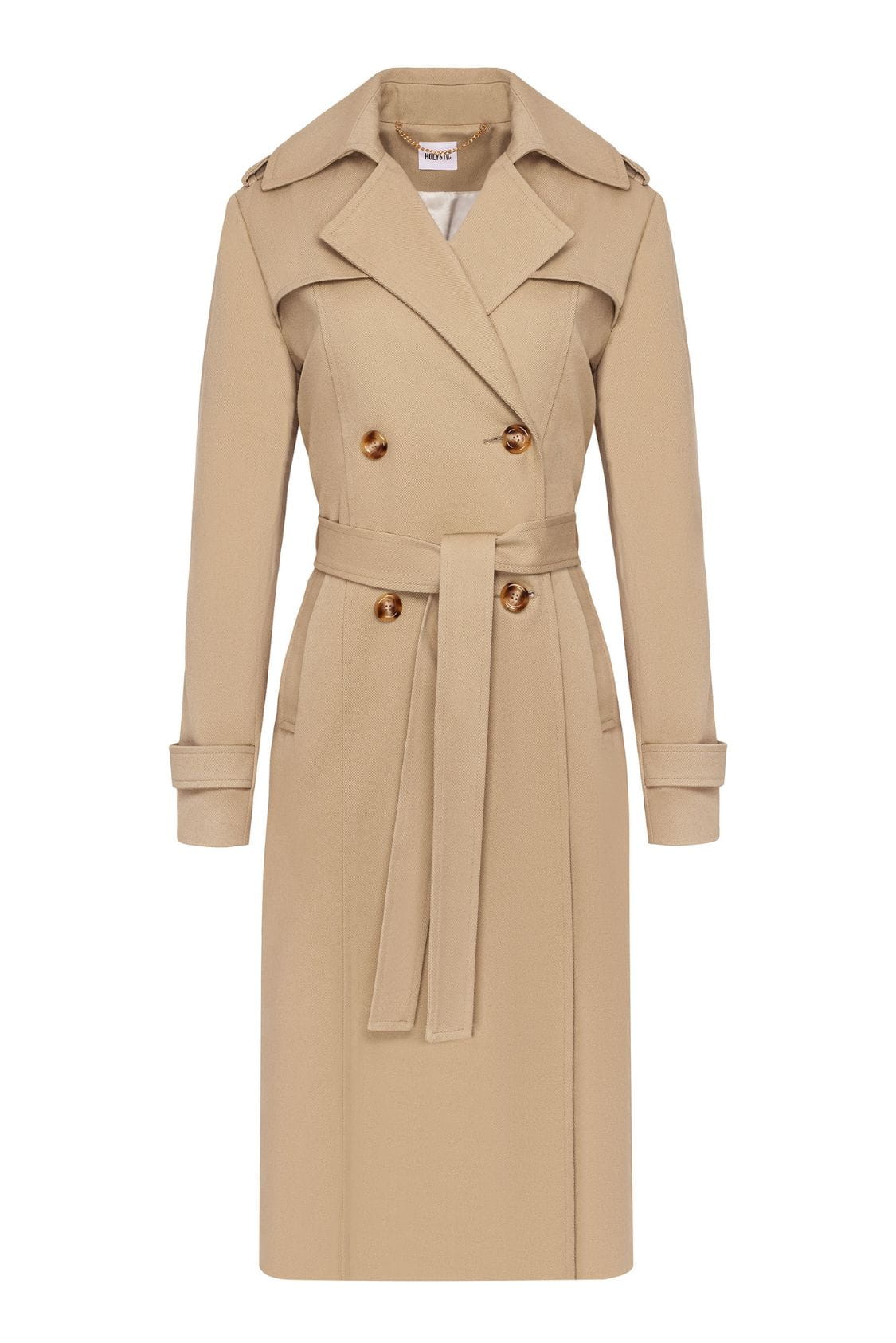 Beżowy bawełniany klasyczny trencz z paskiem - Bergen - personalizacja