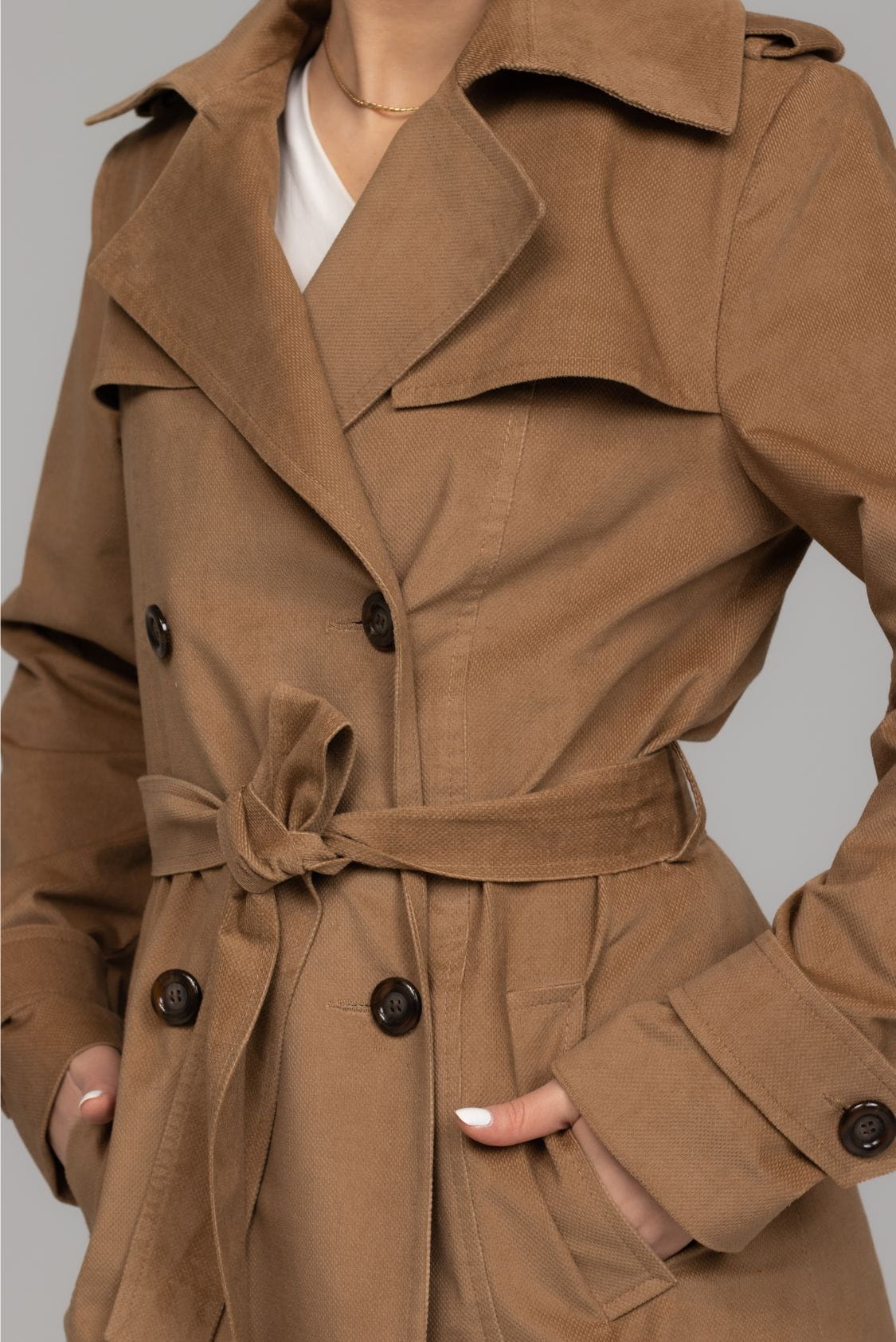 Beżowy trencz klasyczny z paskiem z aksamitnego weluru - Bergen
