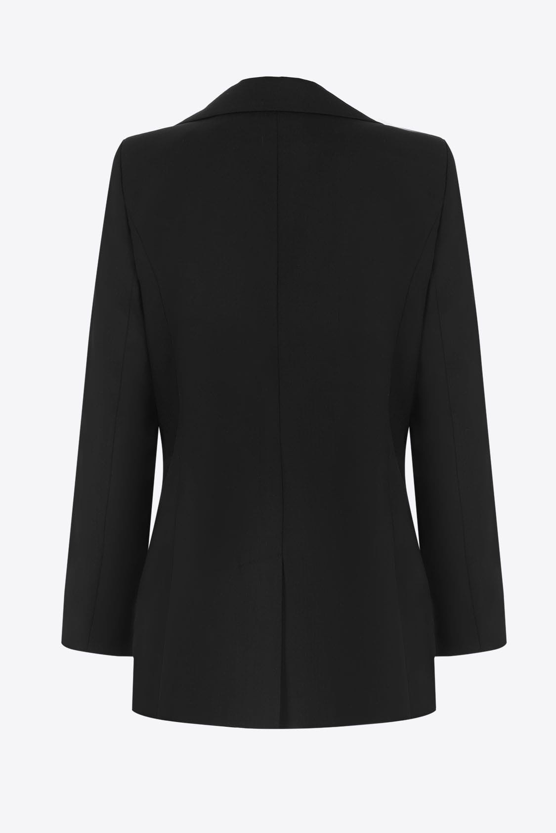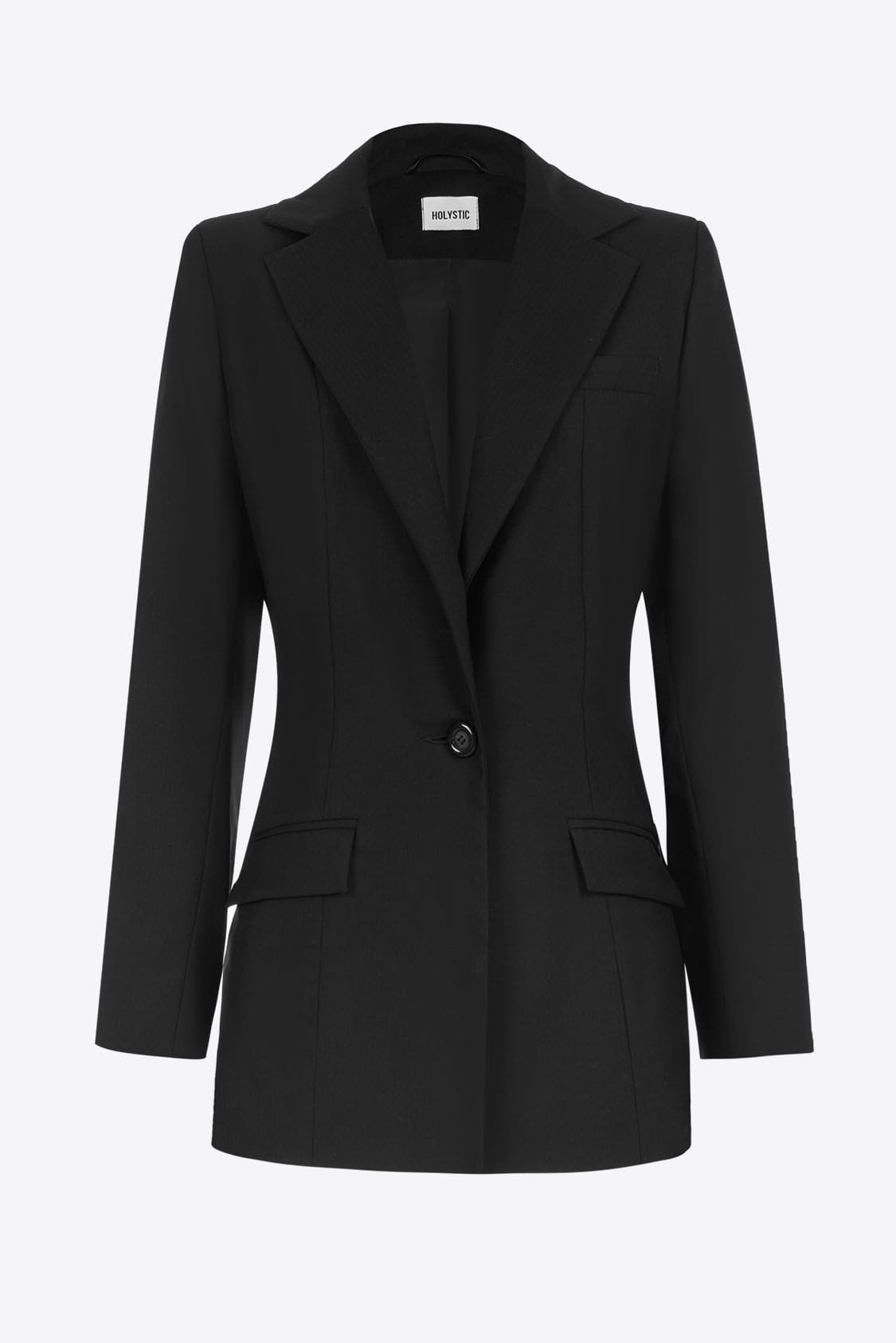 Czarna marynarka damska uszyta na wiskozowej podszewce z włoskiej wełny. Ponadczasowy, klasyczny fason idealnie podkreśla talię. Marynarka pochodzi z limitowanej kolekcji szytej w małych seriach w lokalnej szwalni z kilkudziesięcioletnim doświadczeniem.
