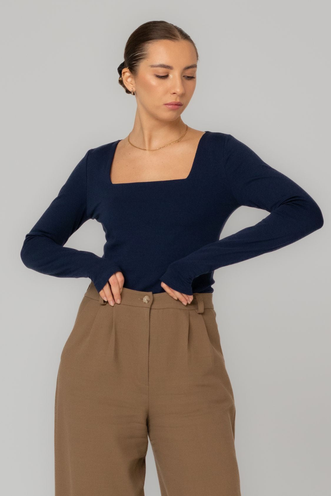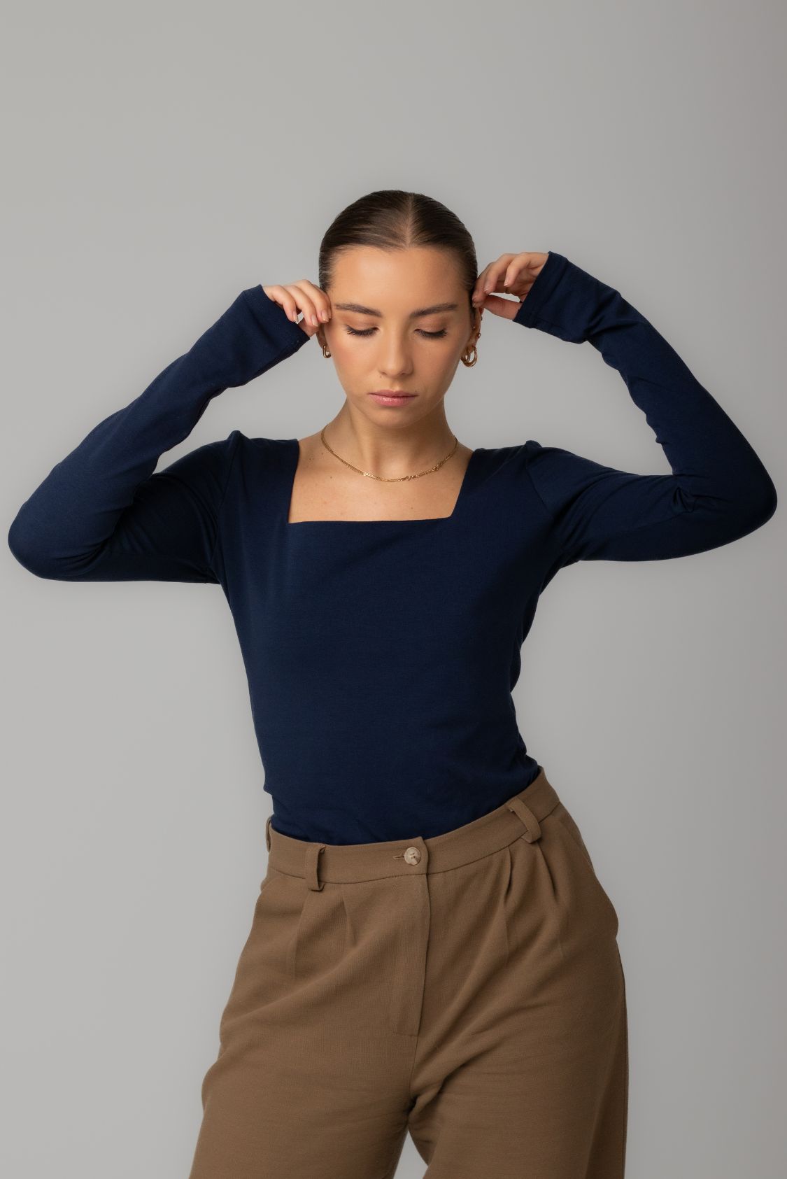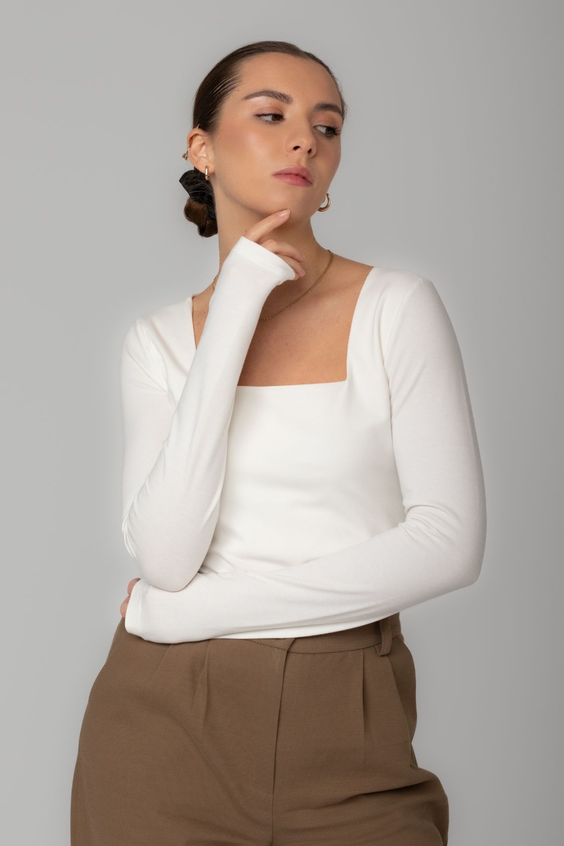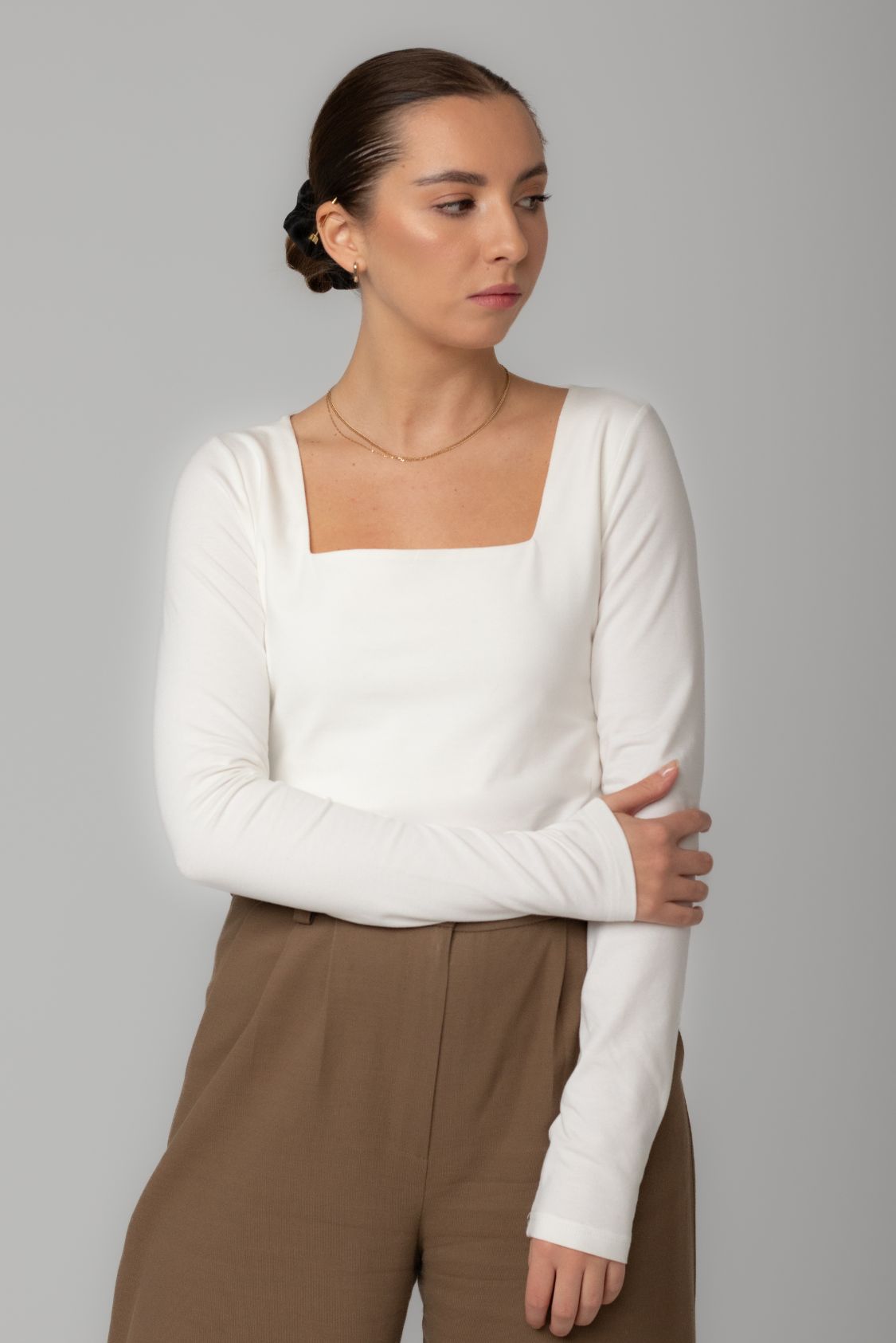 Longsleeve damski z kwadratowym dekoltem z bawełny organicznej