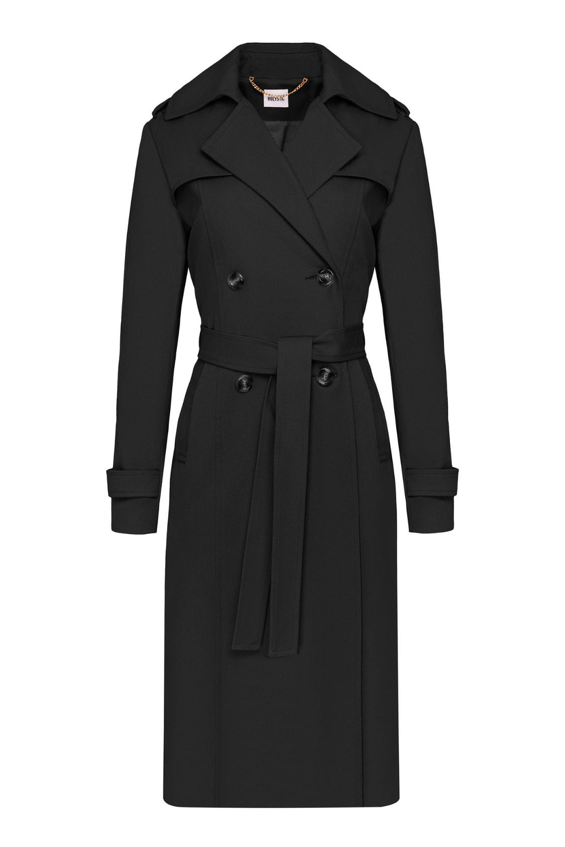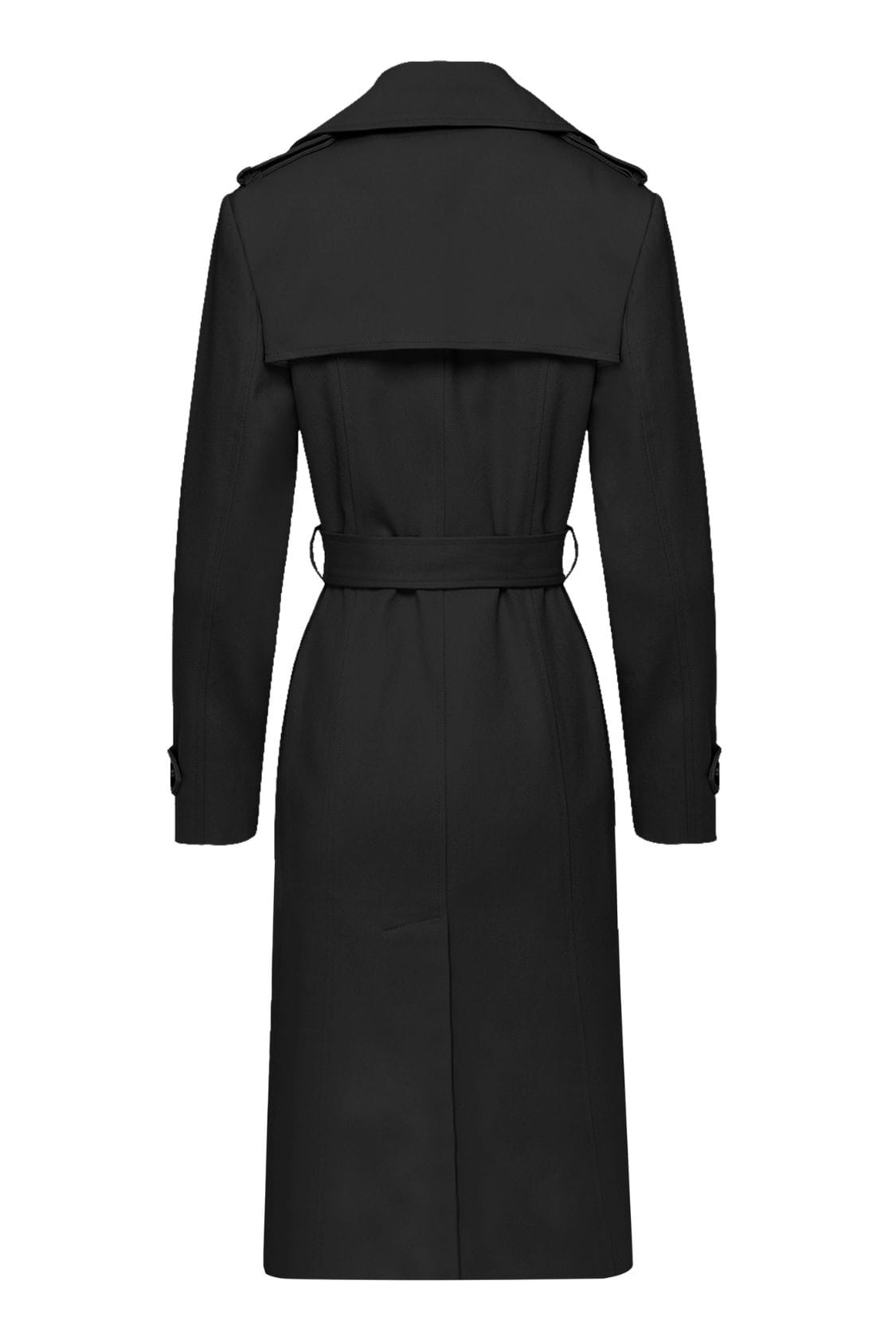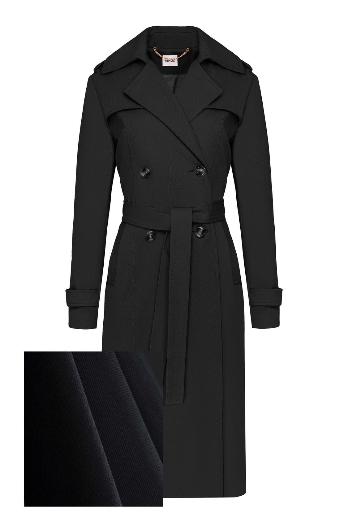 Czarny trencz klasyczny z paskiem z aksamitnego weluru - Bergen
