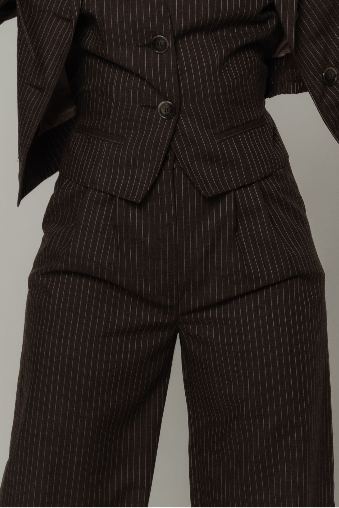 Długie spodnie garniturowe uszyte z włoskiej wełny jagnięce. To połączenie klasycznego designu, komfortu i troski o środowisko. Długie spodnie garniturowe jest uszyta z miłej w dotyku włoskiej wełny. Tkanina jest stosunkowo odporna na zagniecenia o zwartej i mięsistej strukturze. Wynika to z wykorzystania bardzo dobrej jakościowo dziewiczej owczej wełny. Wełna, jako naturalne włókno, ma doskonałe właściwości oddychające i termoregulacyjne, zapewniając wysoki komfort w różnych warunkach pogodowych. Dodatkowo, wełna jagnięca słynie z miękkości, dzięki temu marynarka uszyta z wełny jagnięcej będzie komfortowa w noszeniu. Długie spodnie garniturowe w kolorze brązowym to nie tylko wybór modny, ale także odpowiedzialny. Dodając ją do swojej garderoby, wyrażasz swój styl i troskę o środowisko.