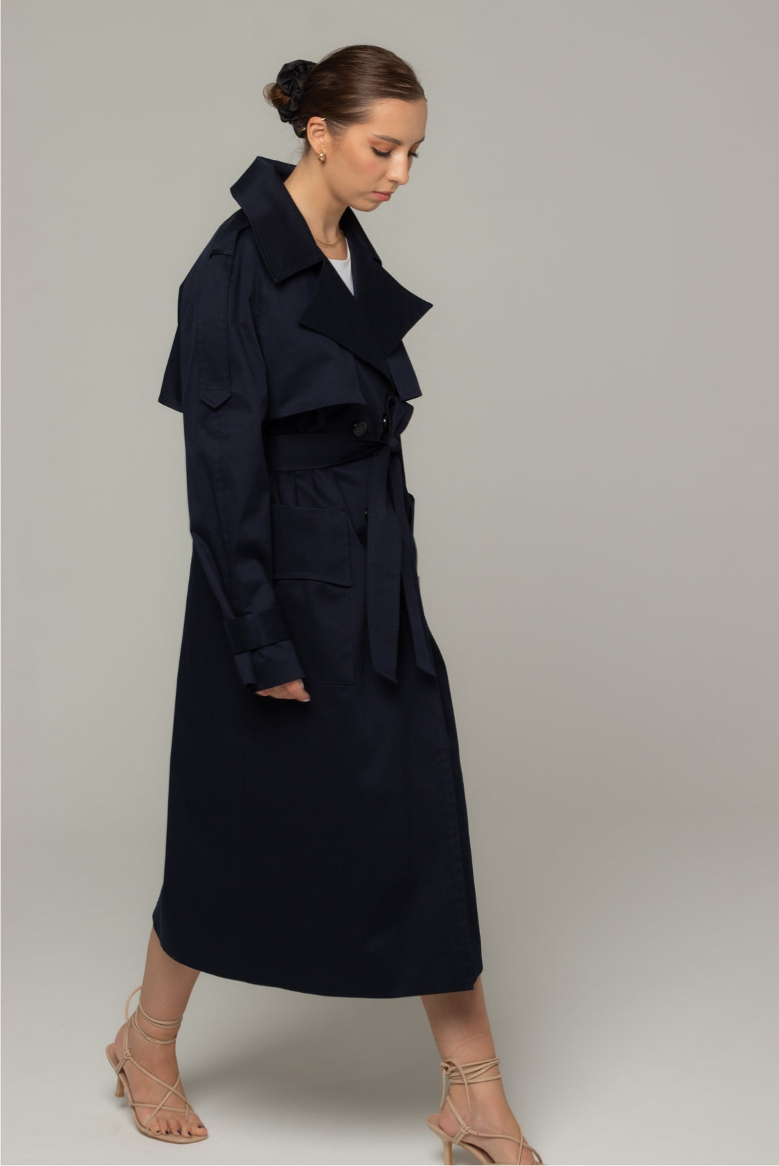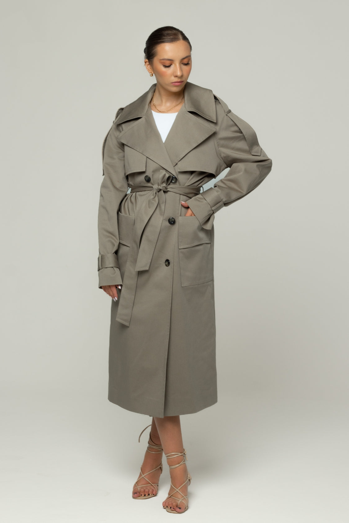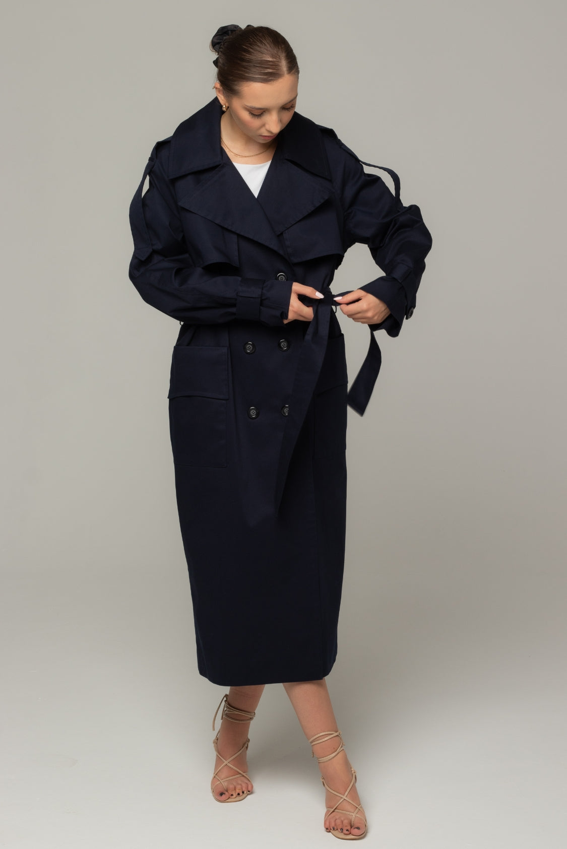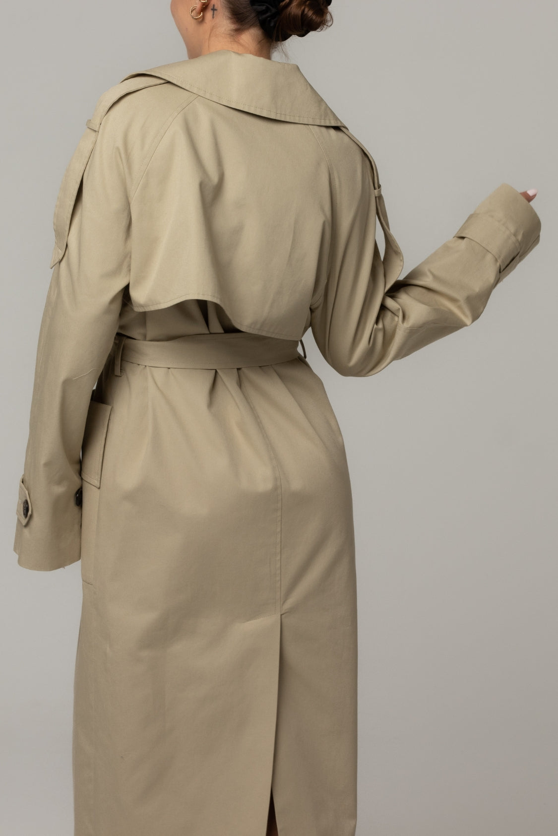 Trencz oversize dwurzędowy, z paskiem - Lima