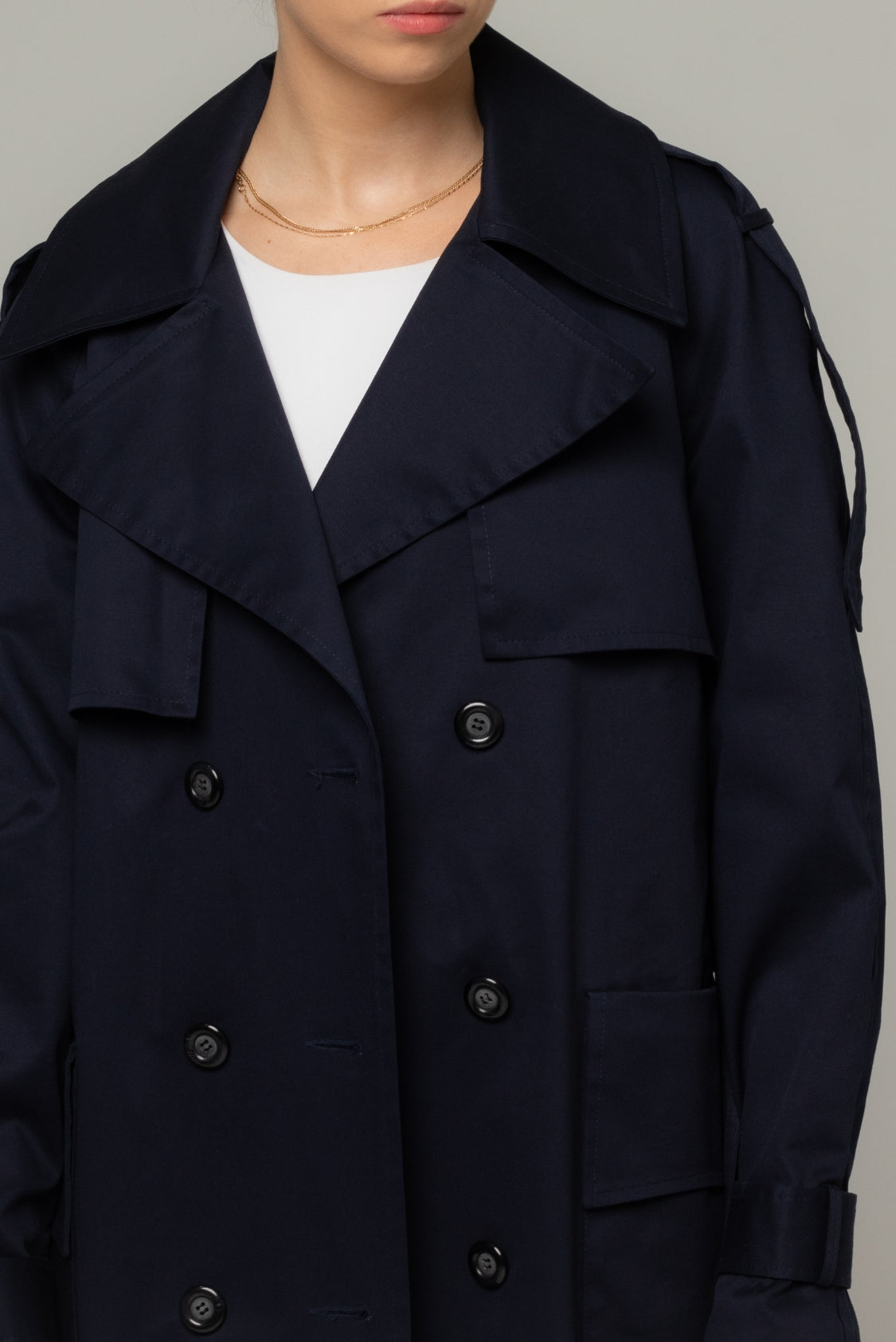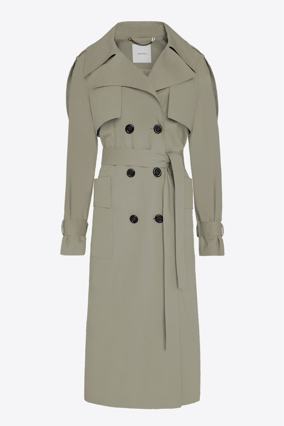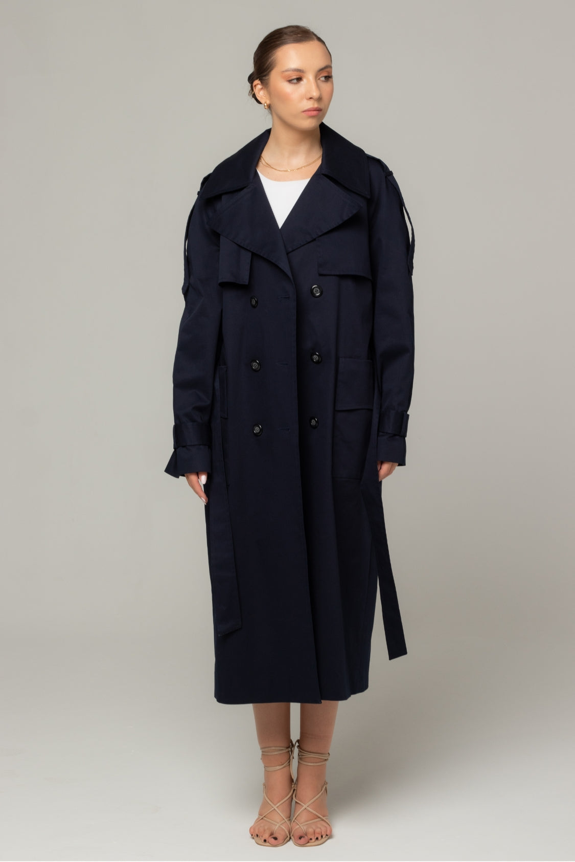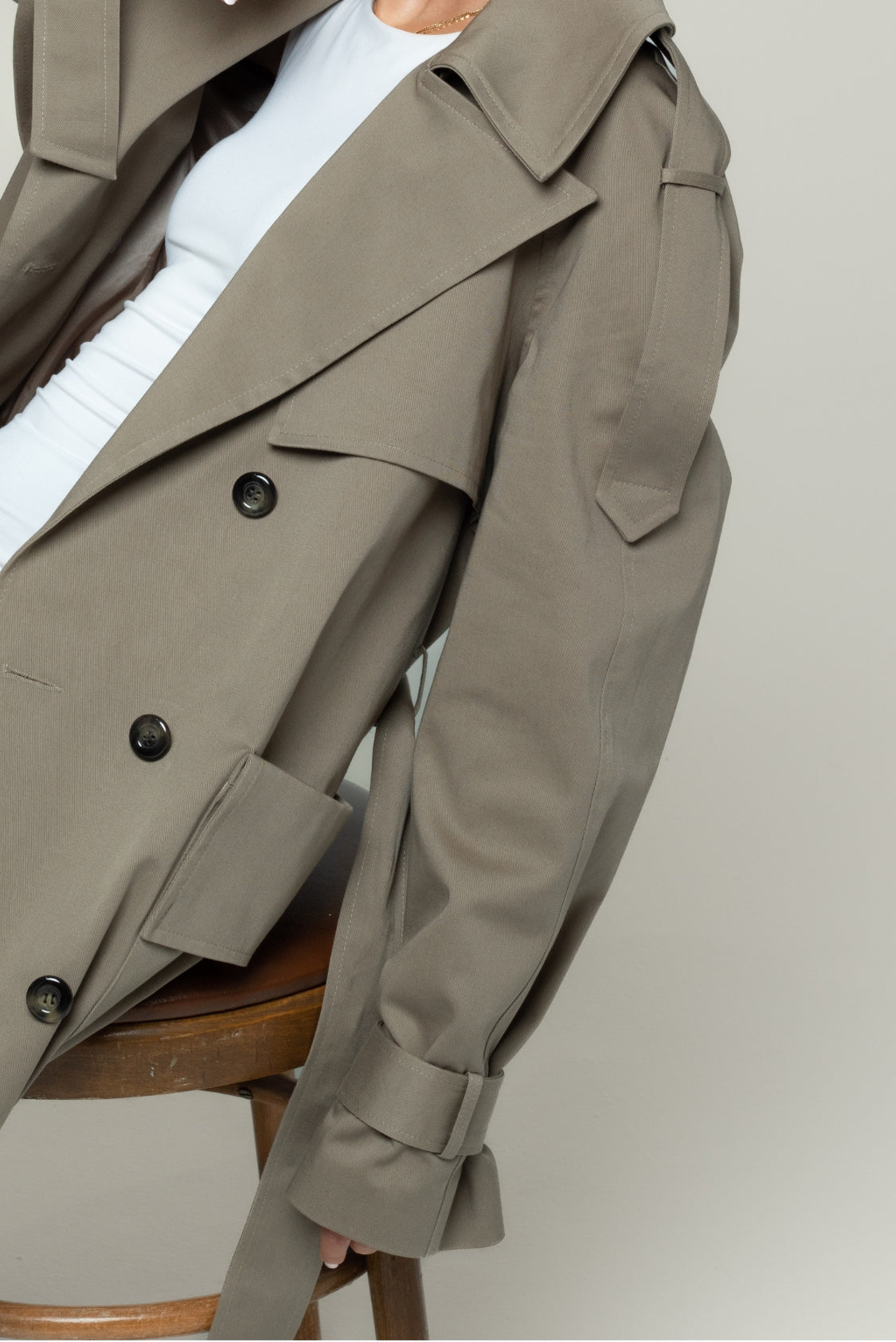 Trencz oversize dwurzędowy, z paskiem - Lima