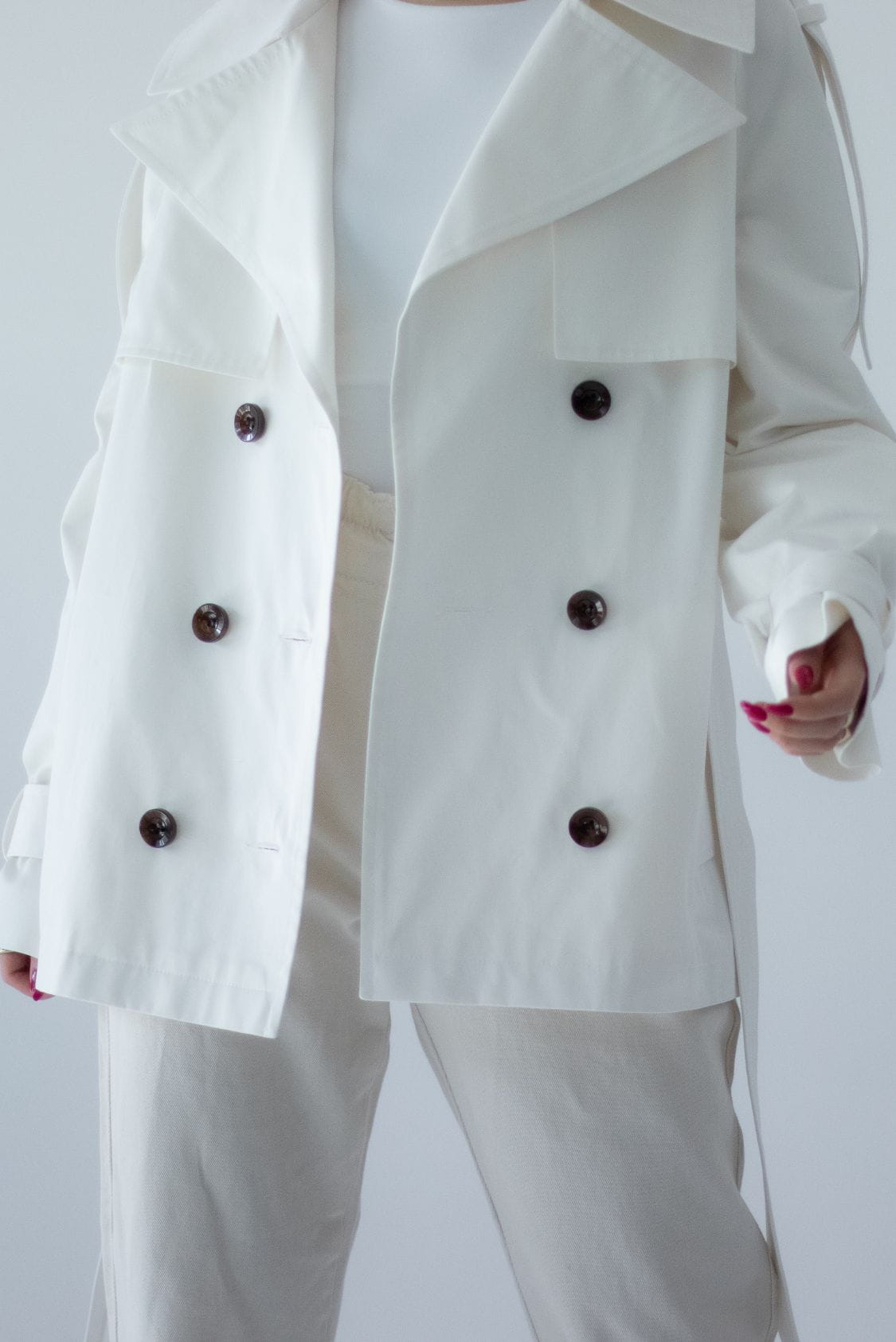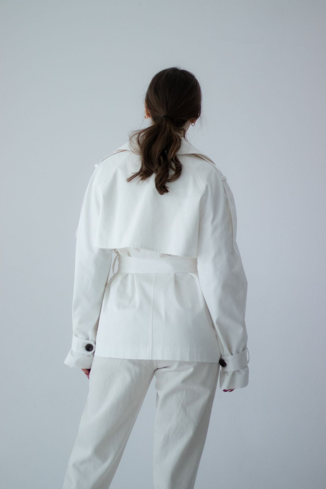 Ecru trencz oversize krótki, z paskiem Cloud Dancer - Roma