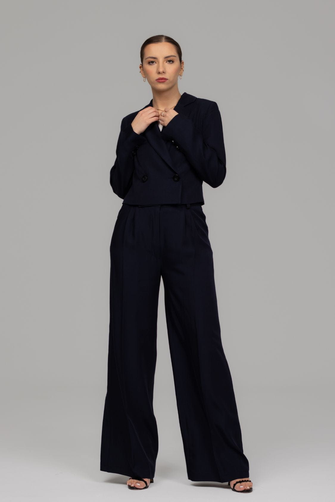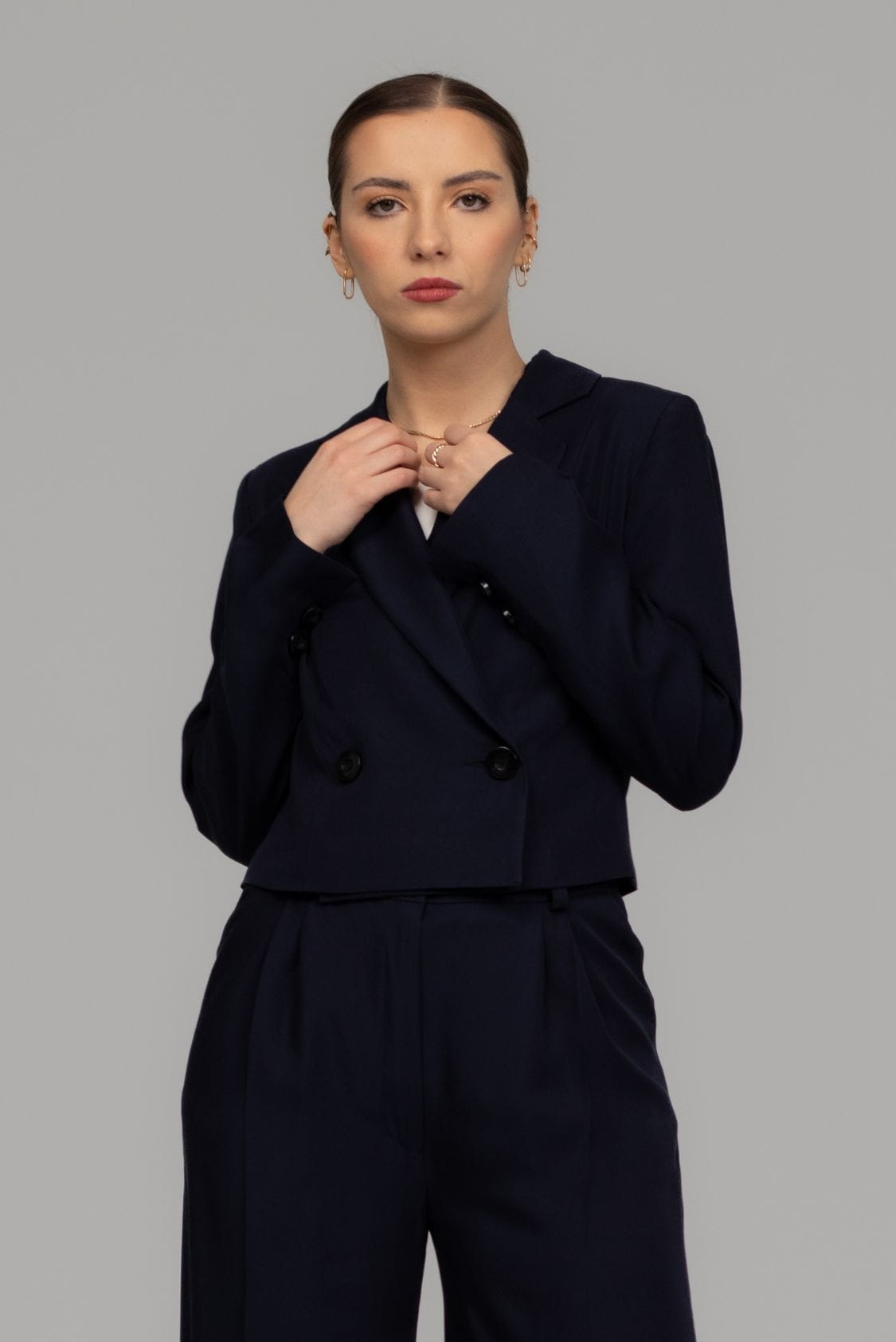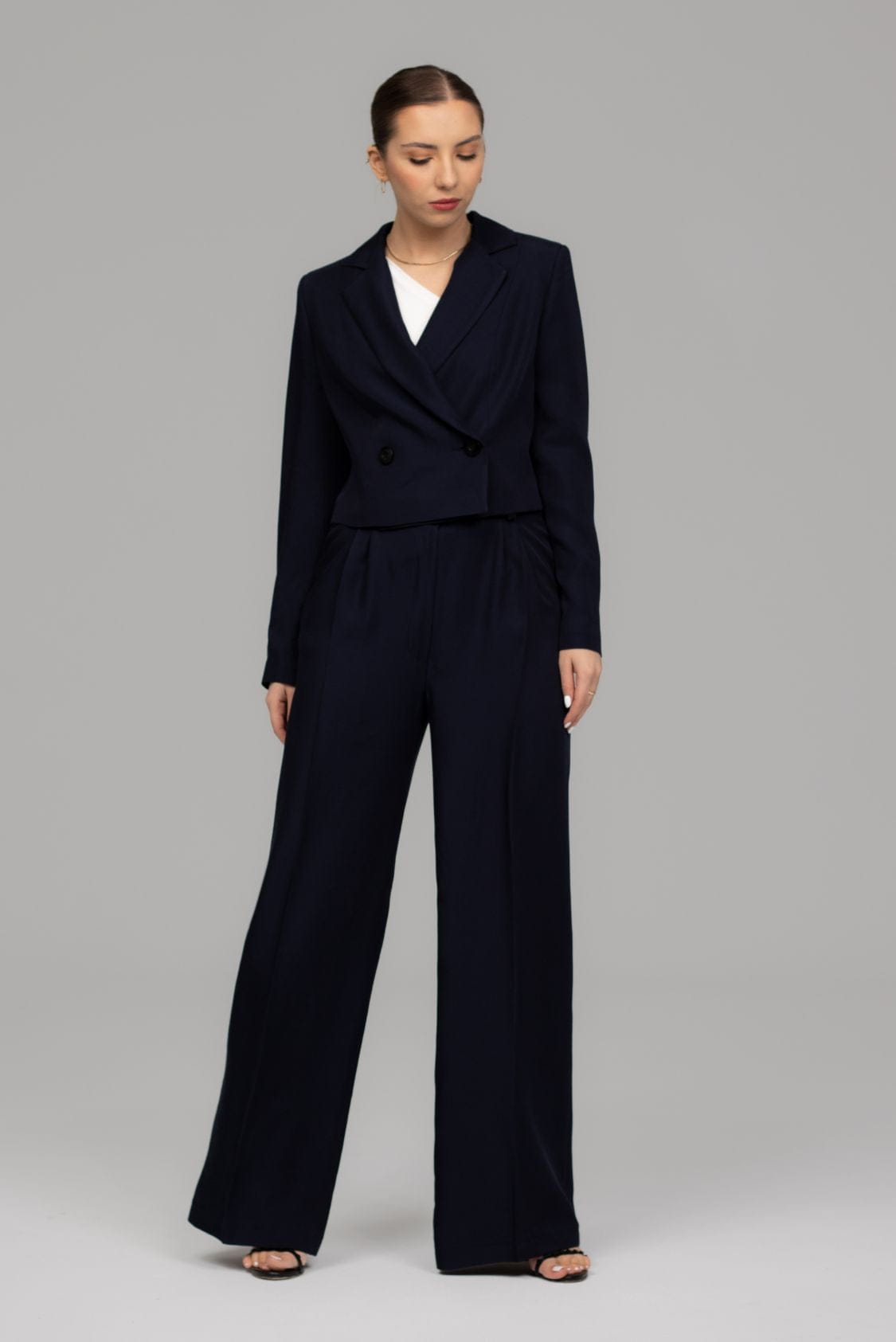 Granatowa krótka marynarka damska z wiskozy i lyocellu
