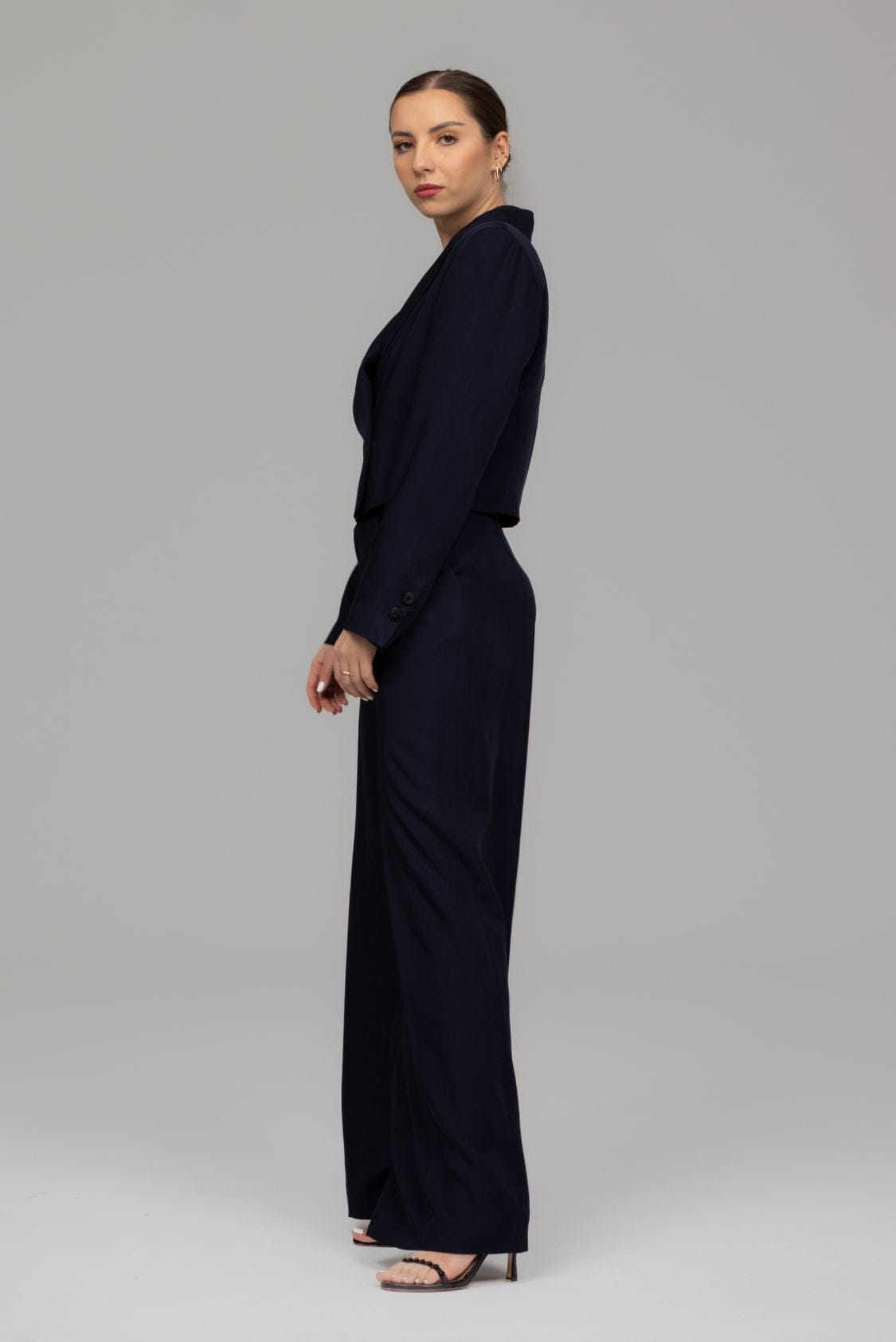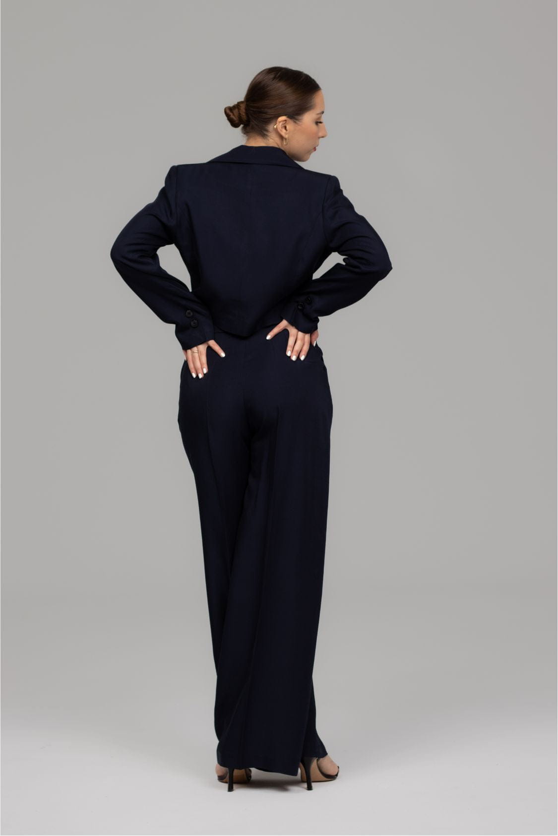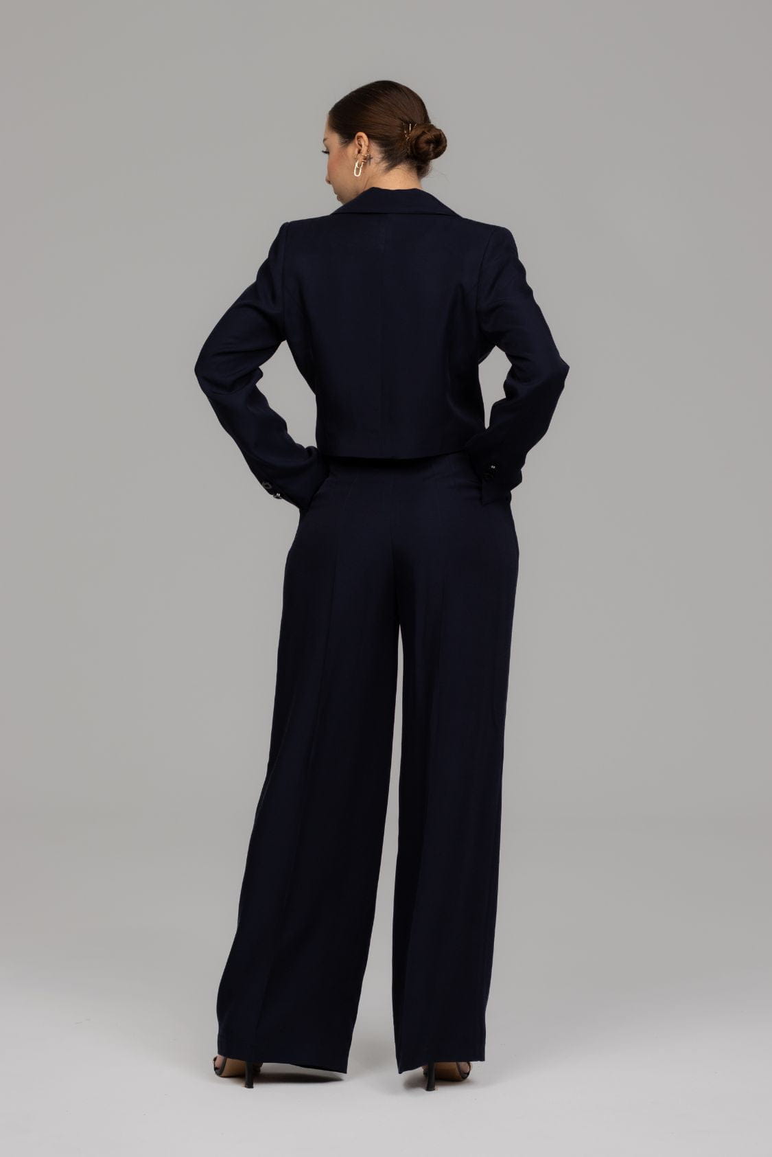 Granatowa krótka marynarka damska z wiskozy i lyocellu