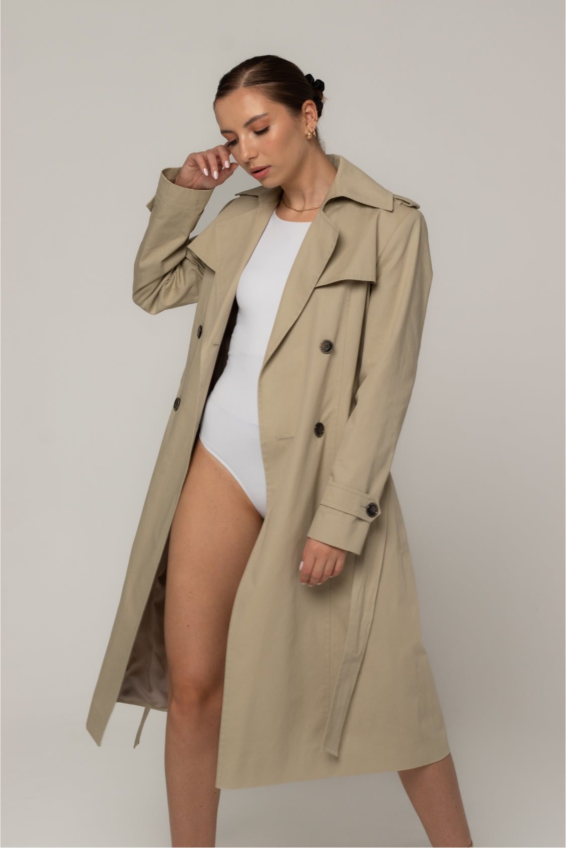 Trencz klasyczny z paskiem, z bawełny - Bergen