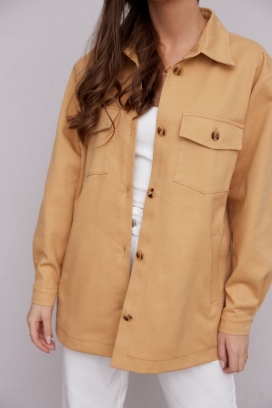 Kurtka koszulowa damska w kolorze miodowym jest już uszyta w rozmiarze S. Jeśli jesteś zainteresowana uszyciem kurtki w innym kolorze, wybierz odpowiedni wariant kolorystyczny i rozmiar w ramach personalizacji.