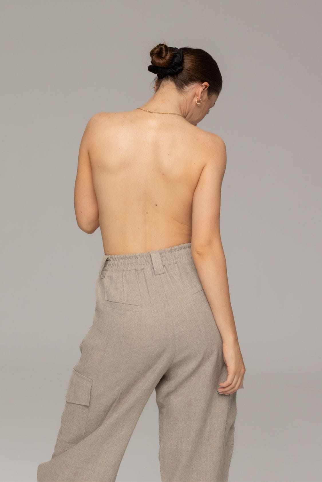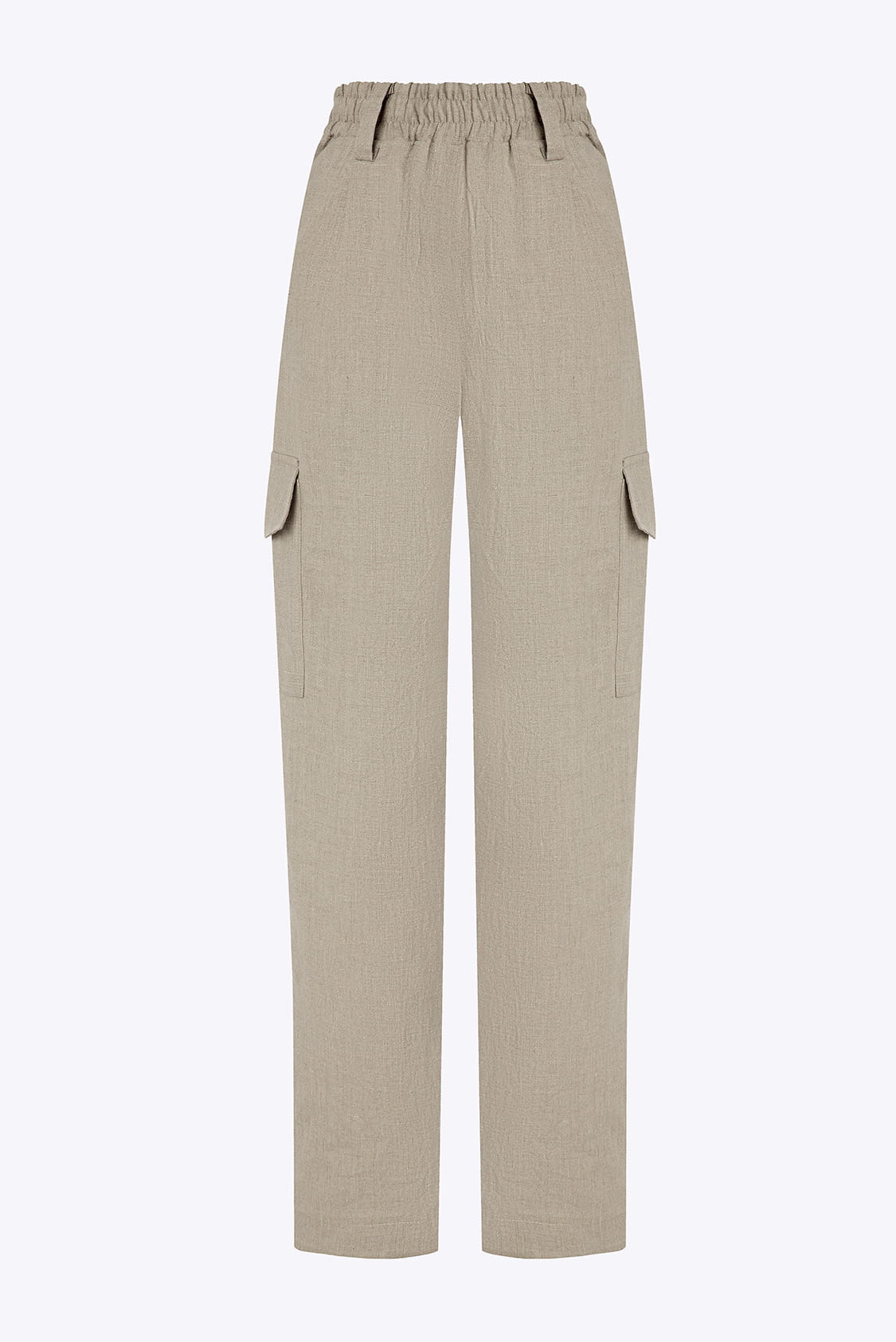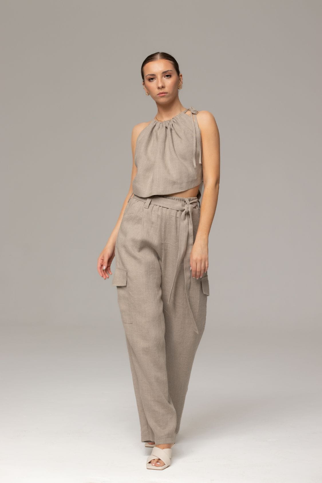 Lniane spodnie cargo damskie beżowe - spersonalizuj pod siebie