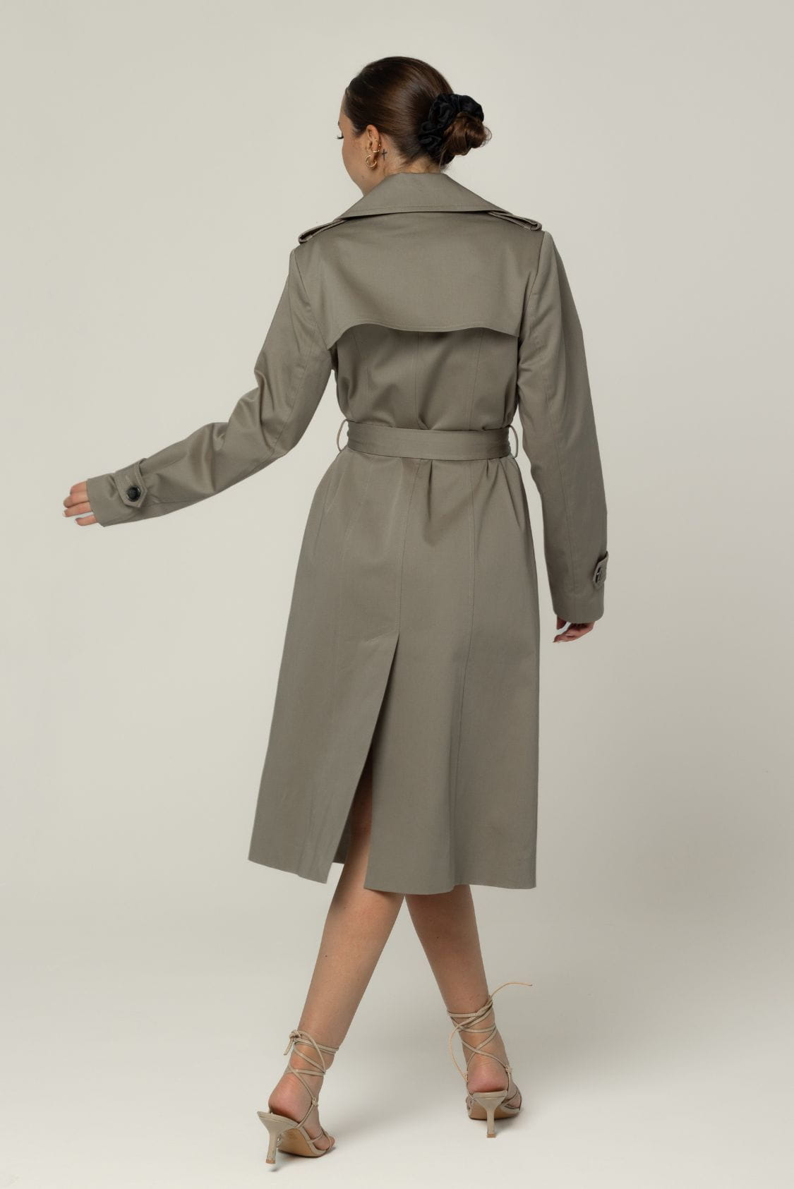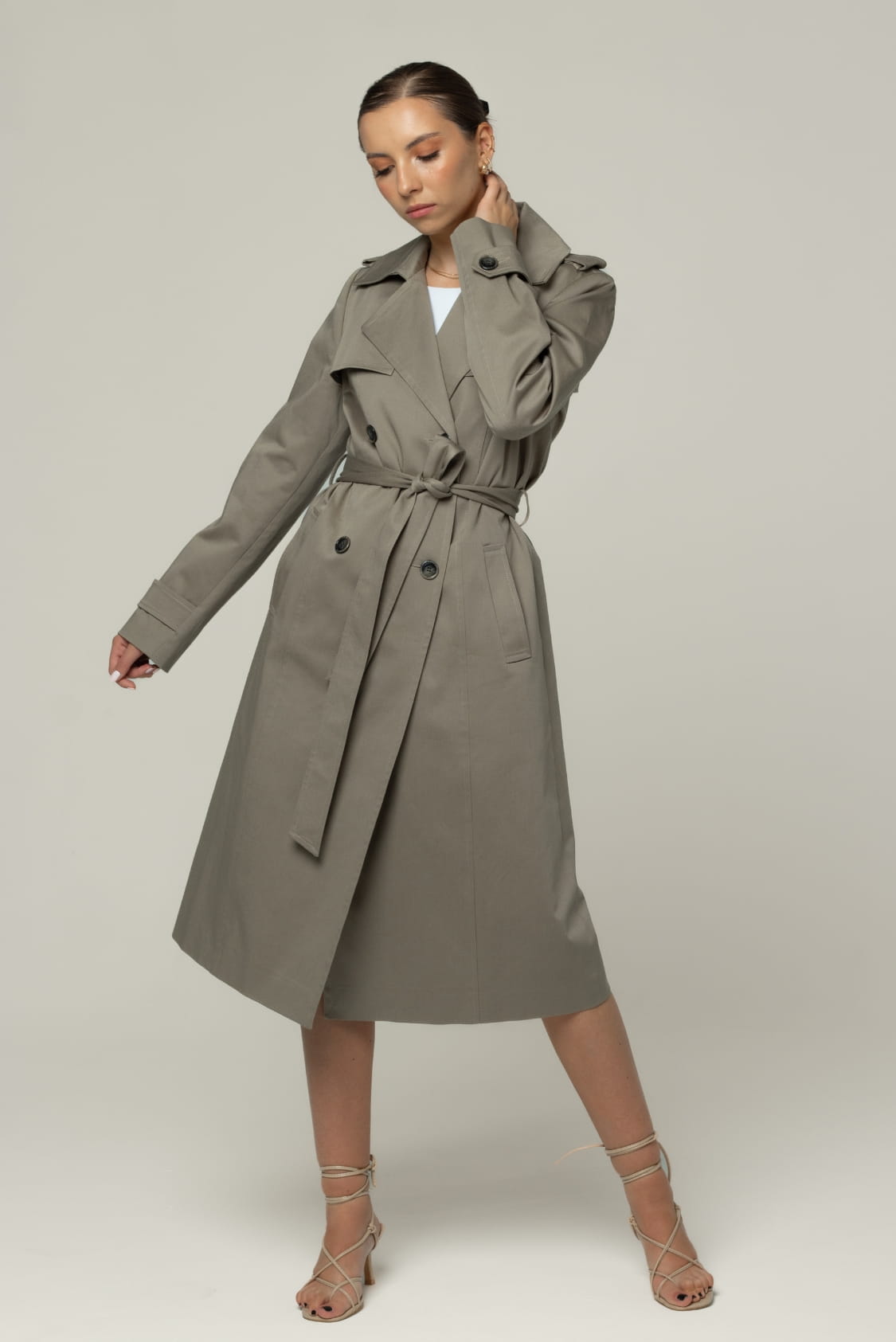 Bergen to ponadczasowy, klasyczny trencz z dwoma rzędami guzików o taliowanym kroju. Posiada klasycznie wszyty rękaw, który wysmukla sylwetkę. Na dole rękawów znajdują się ozdobne patki zapinane na guzik. Trencz Bergen posiada dwie, wpuszczane kieszenie, dwa rzędy guzików oraz dodatkowy pasek podkreślający talię. Z tyłu, na dole płaszcza znajduje się pęknięcie wydłużające optycznie sylwetkę, dzięki któremu trencz jest komfortowy w chodzeniu, mimo długości maxi.