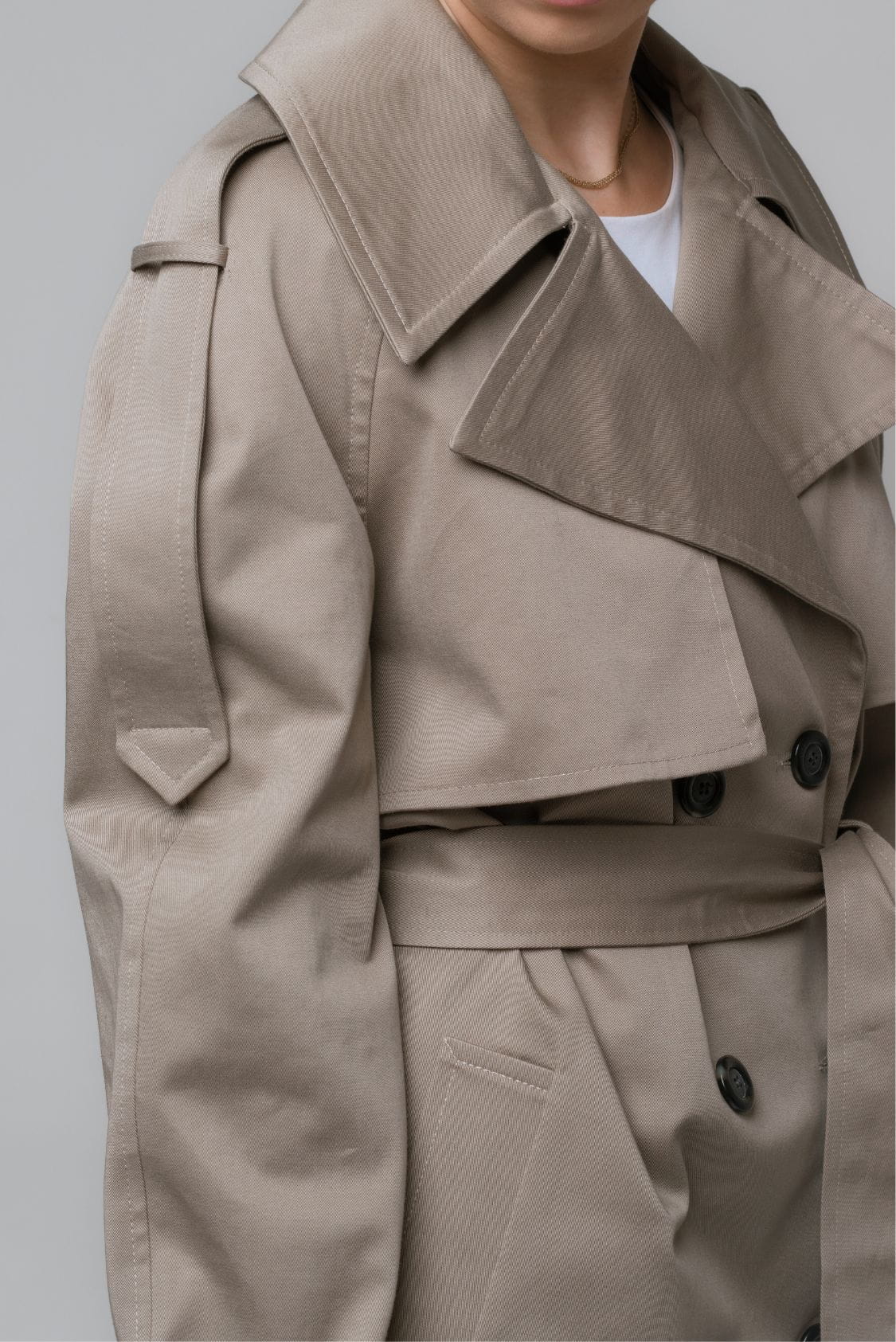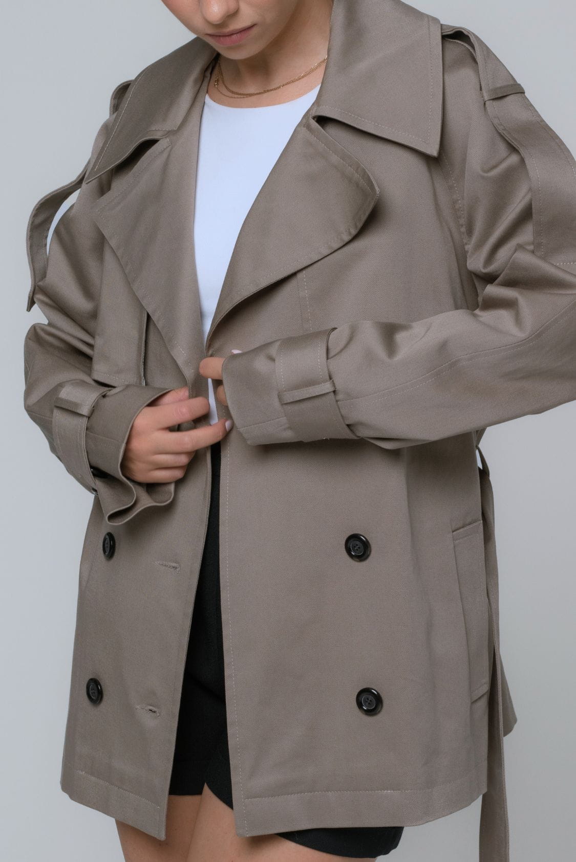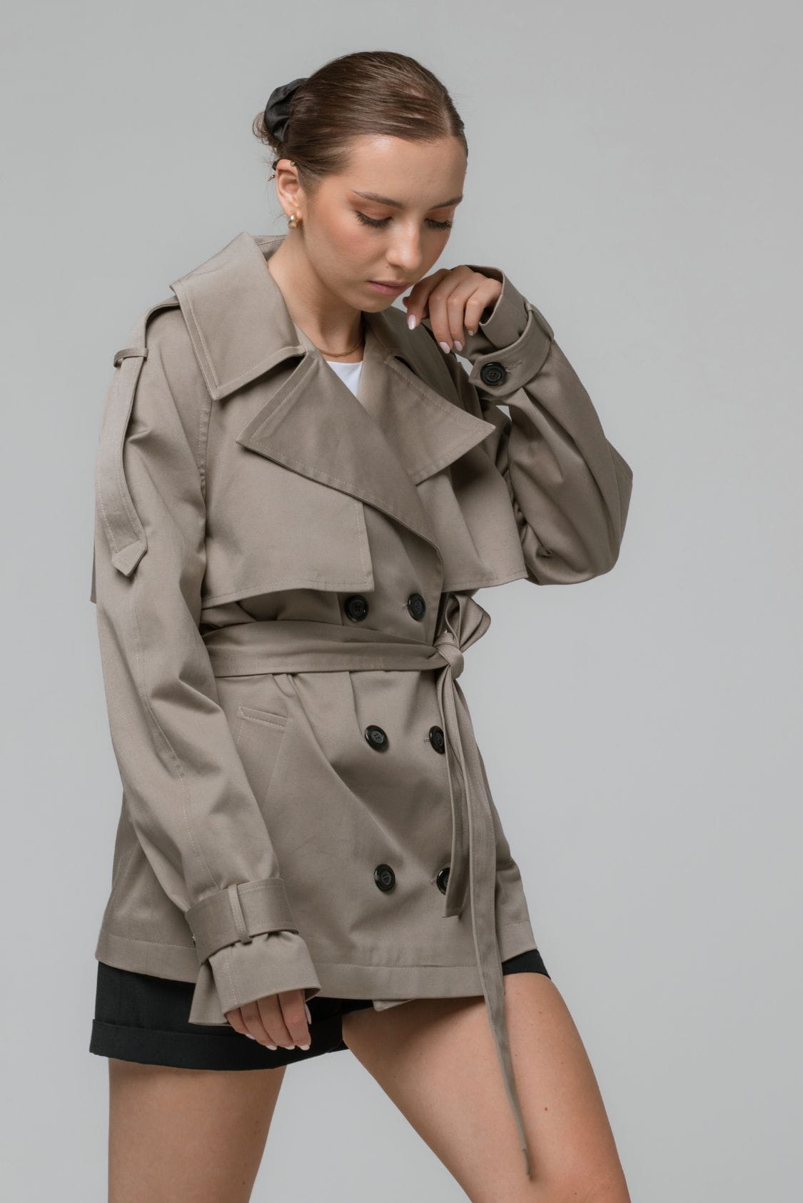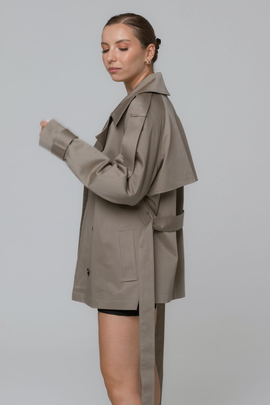 Taupe trencz oversize krótki, z paskiem - Roma