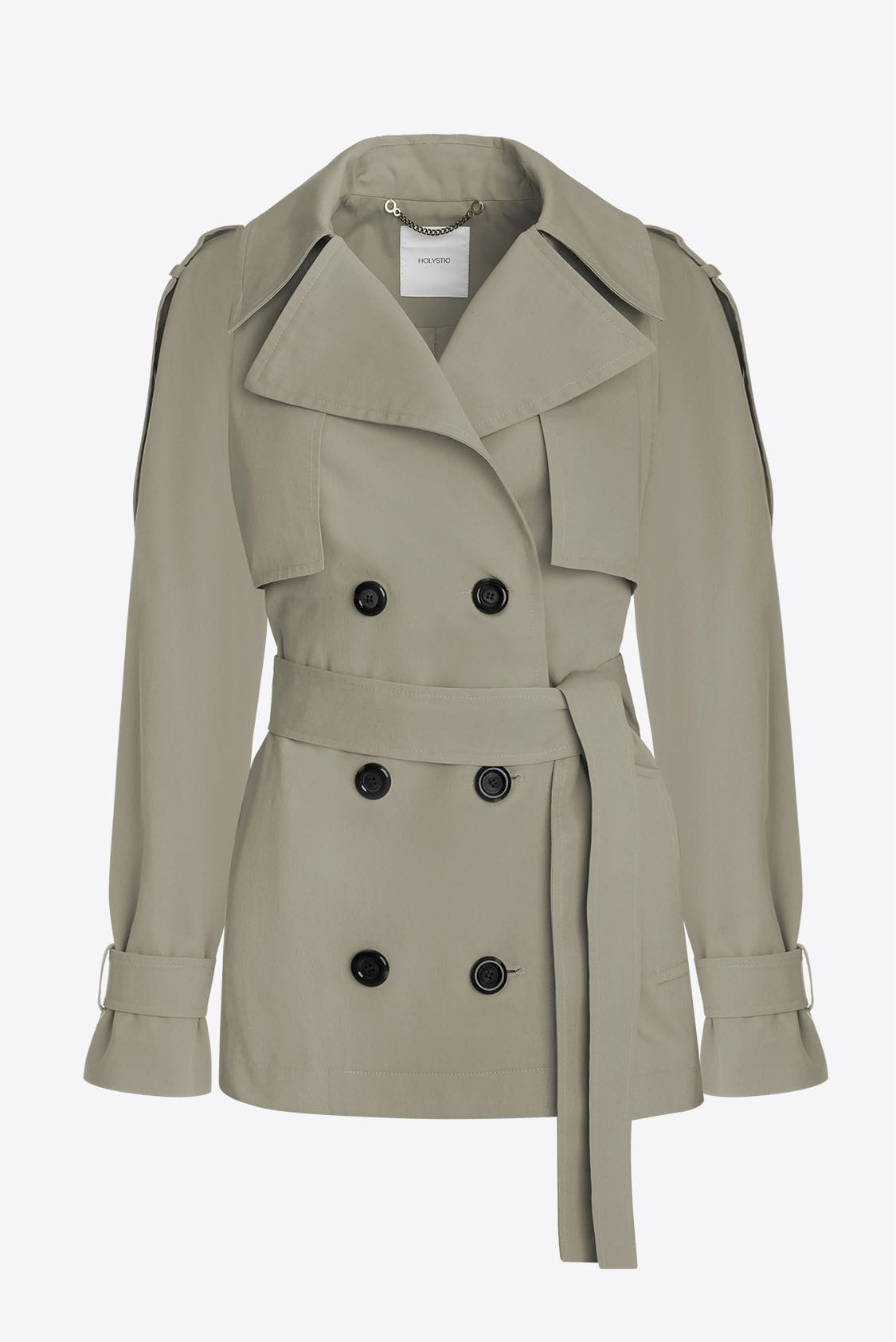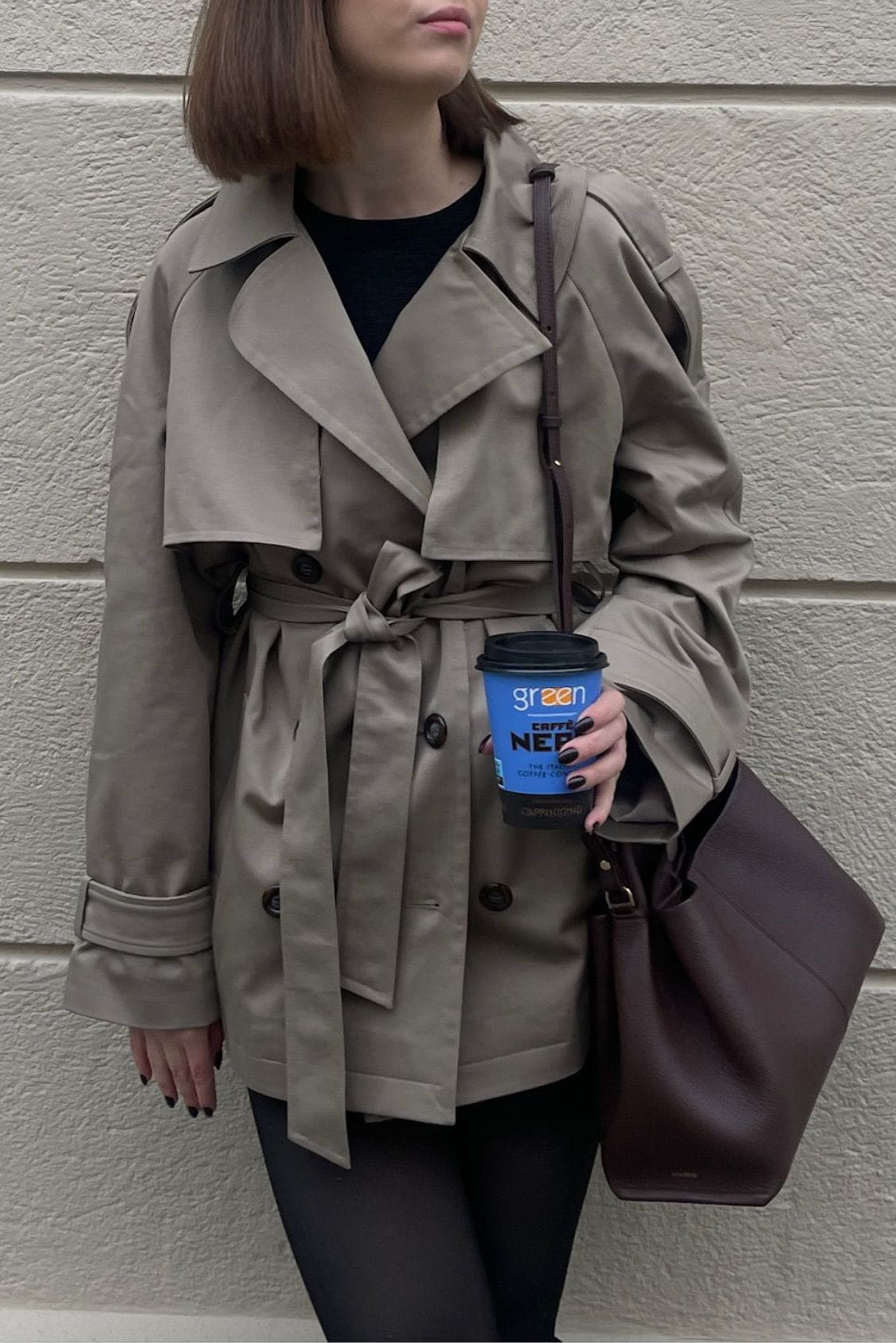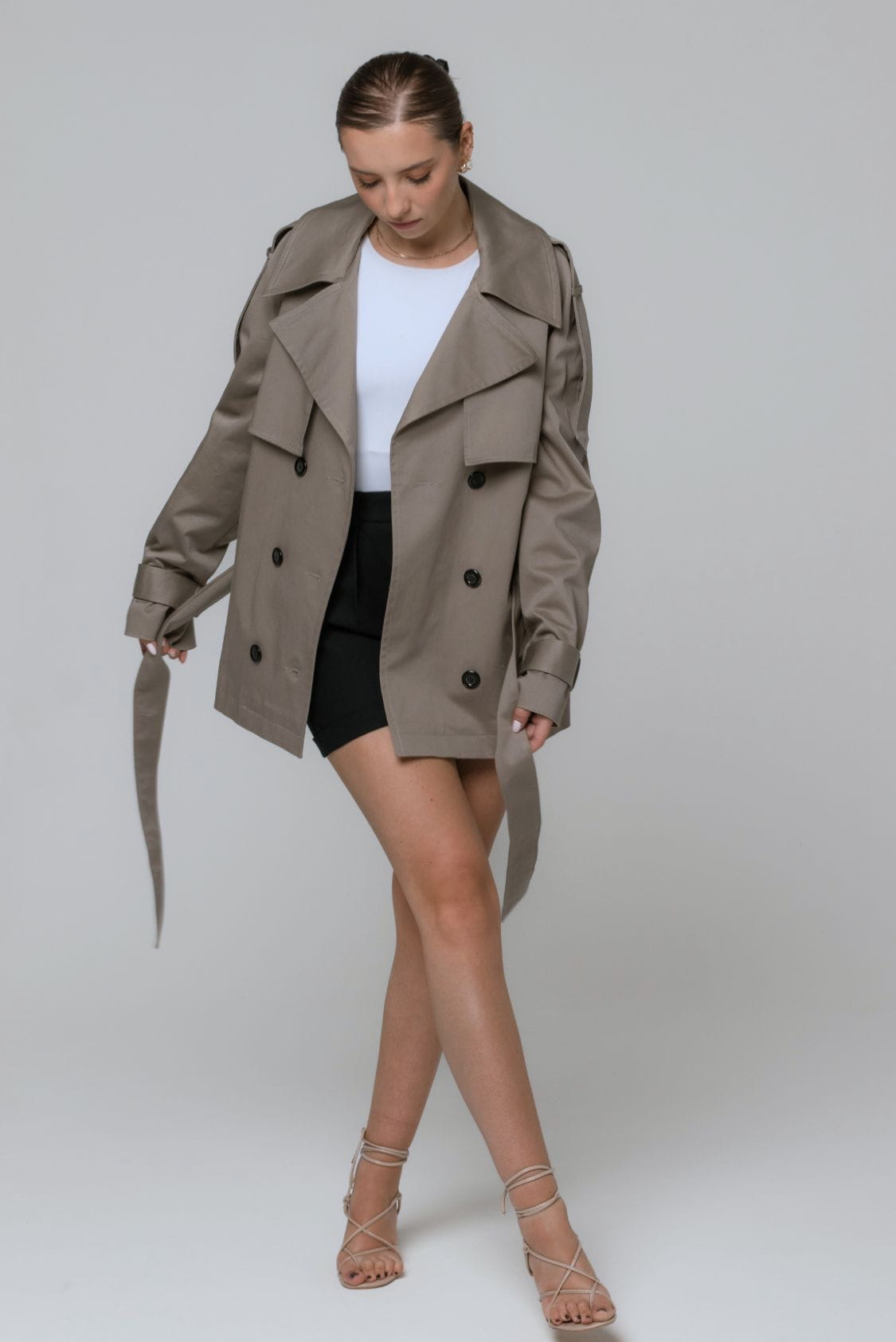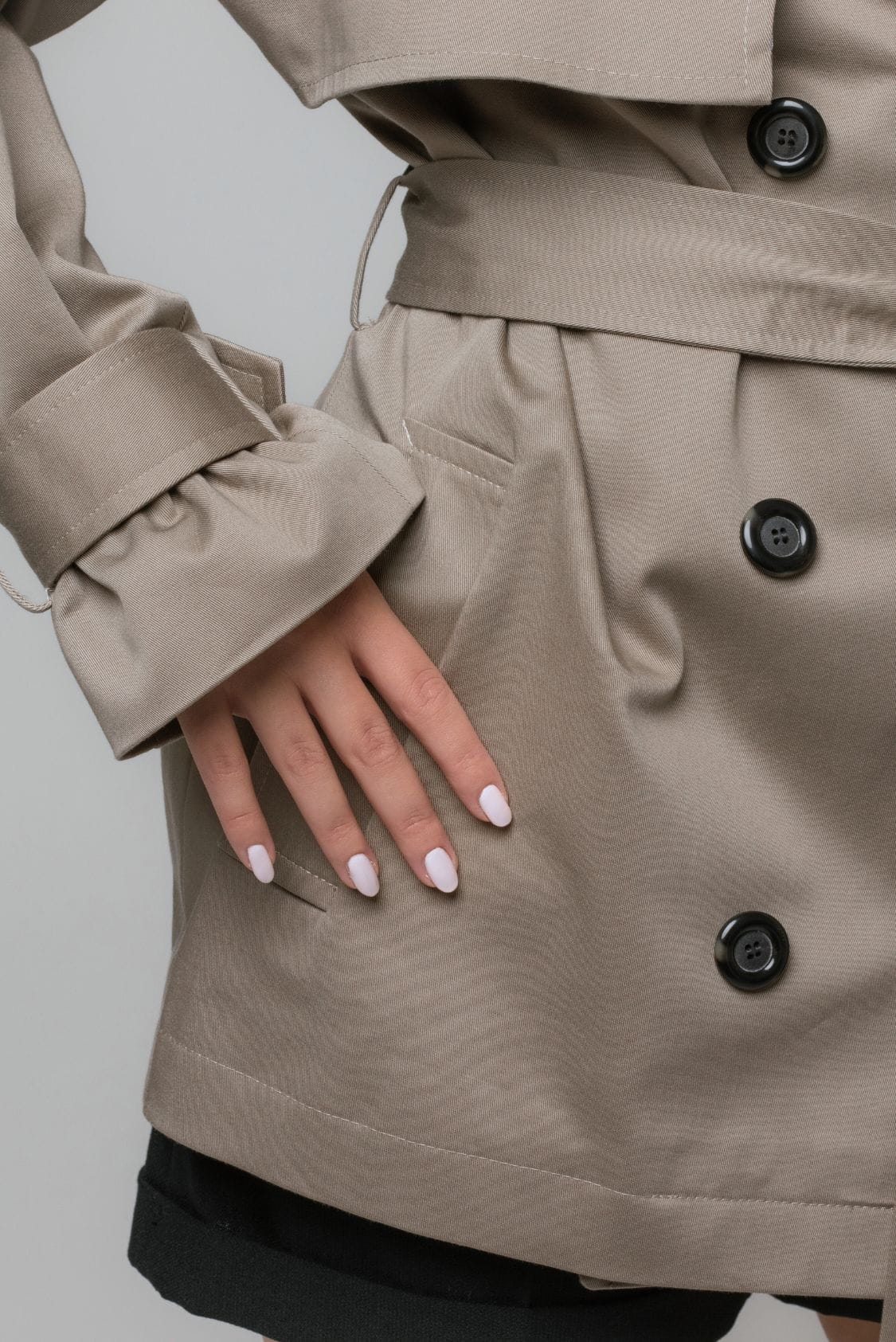 Taupe trencz oversize krótki, z paskiem - Roma