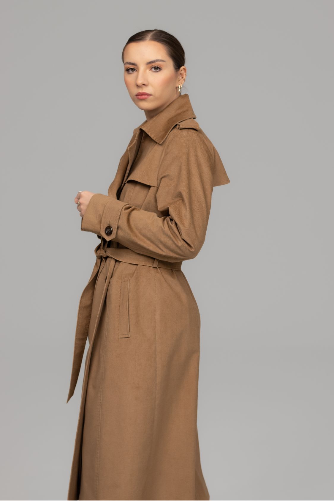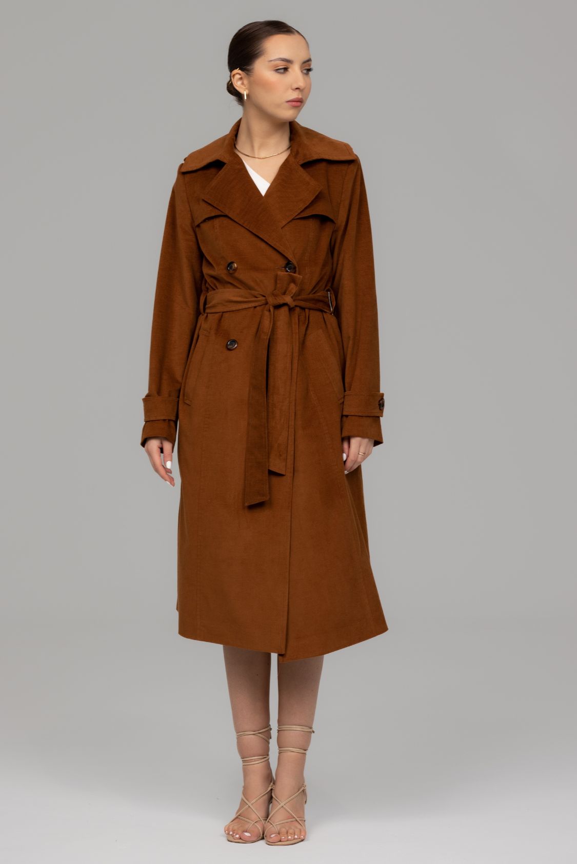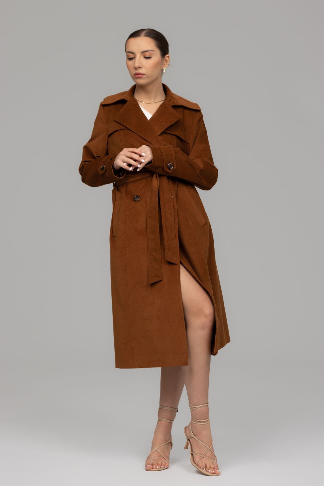 Trencz klasyczny z paskiem z aksamitnego weluru - Bergen