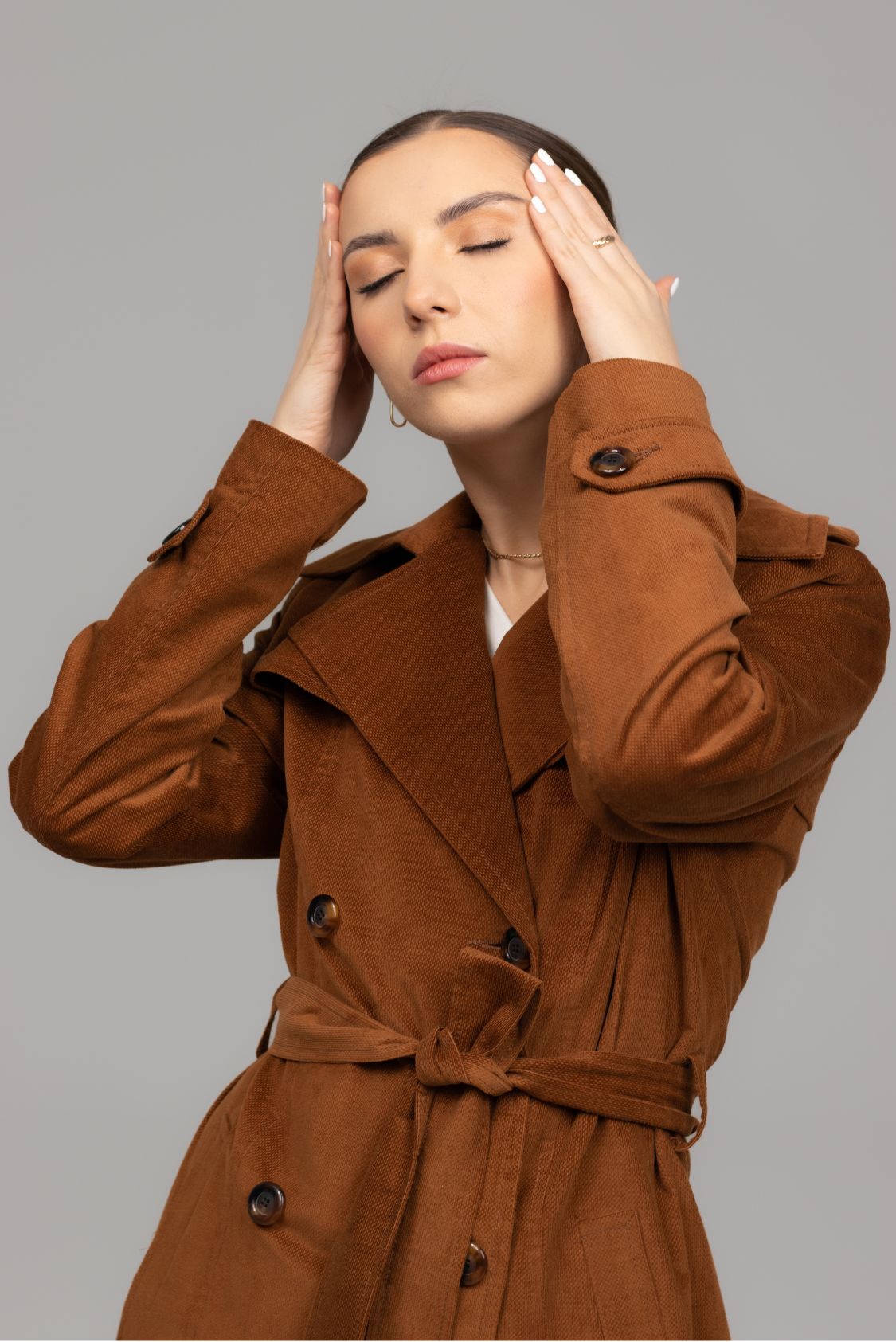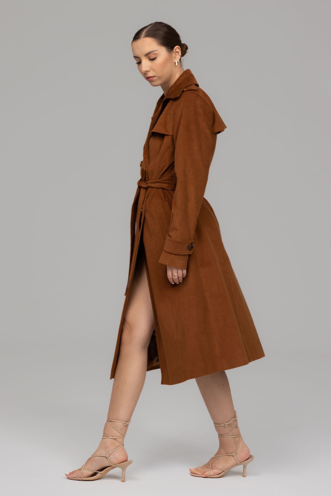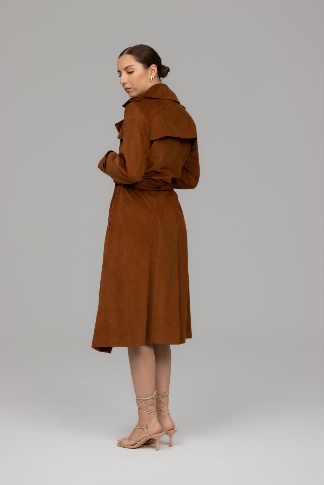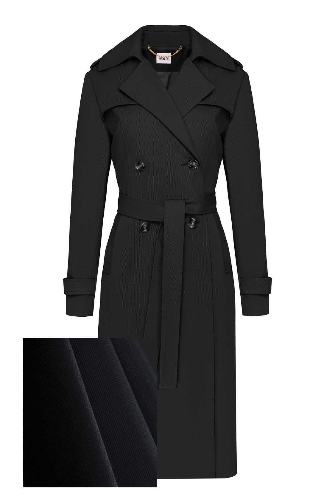 Trencz klasyczny z paskiem z aksamitnego weluru - Bergen